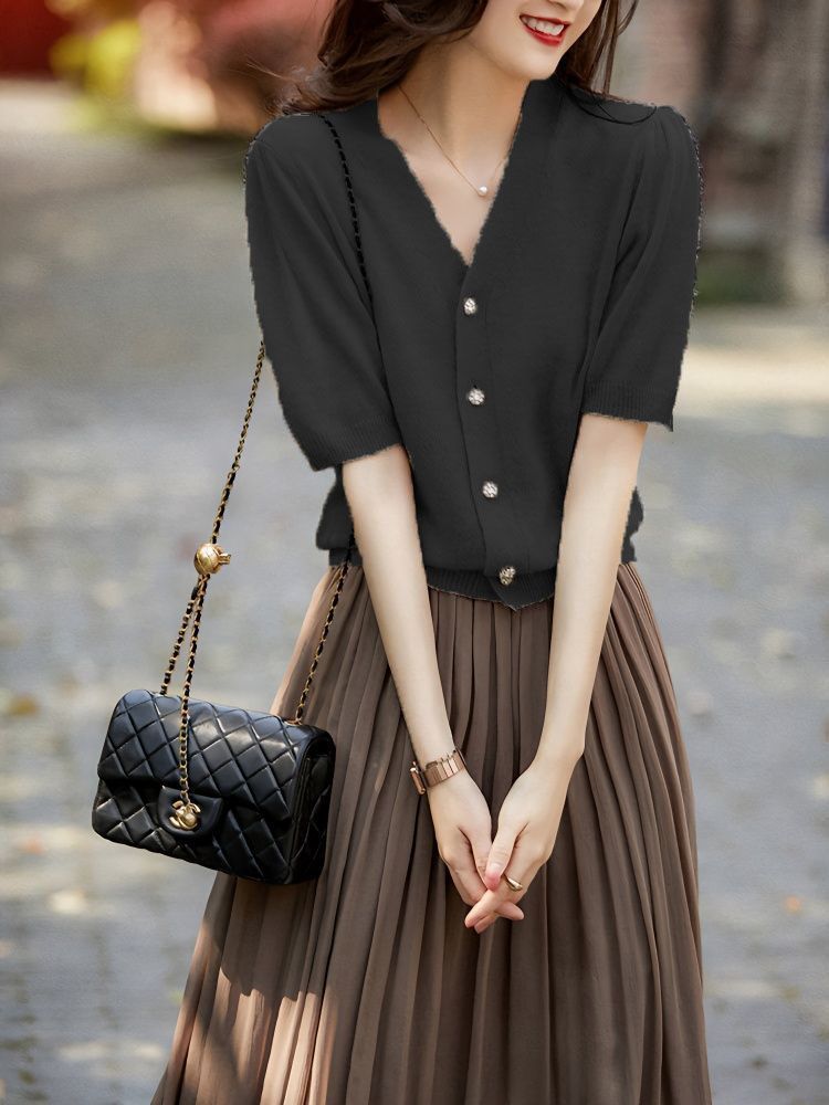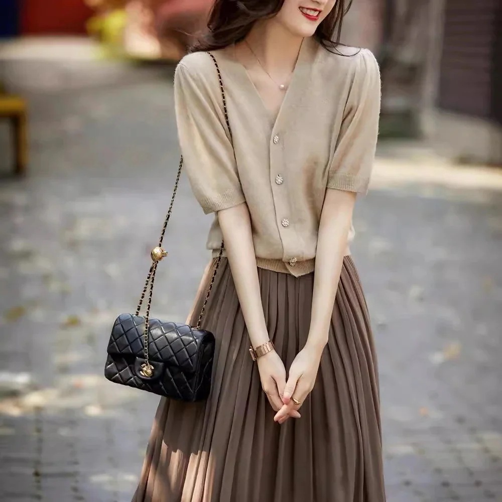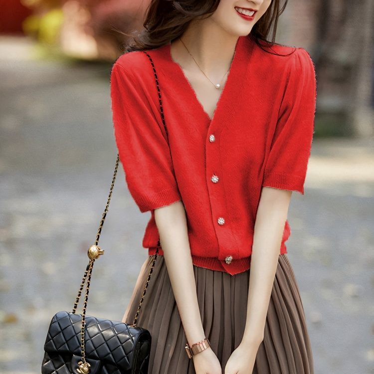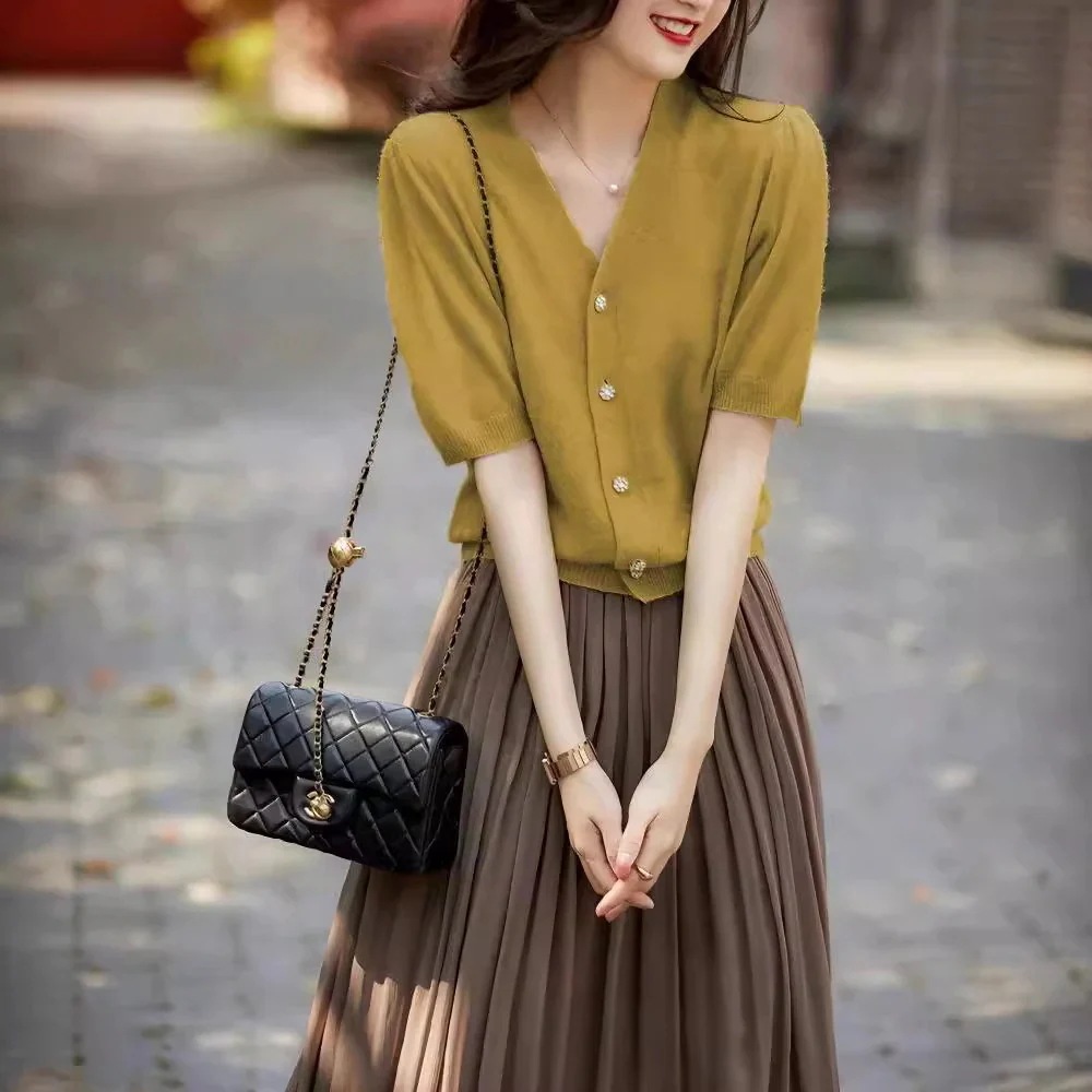 【夏から秋まで使える】2025秋新作Vネックシャツ ブラウス Tシャツ レーストップス 夏服 半袖 レディース カットソー 韓国ファッション カジュアル ト