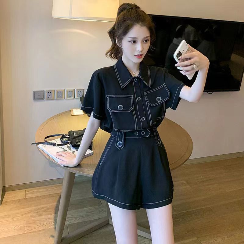 高評価続出 夏の新フレンチレトロネットレッドフライ街の加齢防止ファッション工装半ズボン 2枚セットパンツらしさトレンド セットアップ レディース 夏 ルームウェア