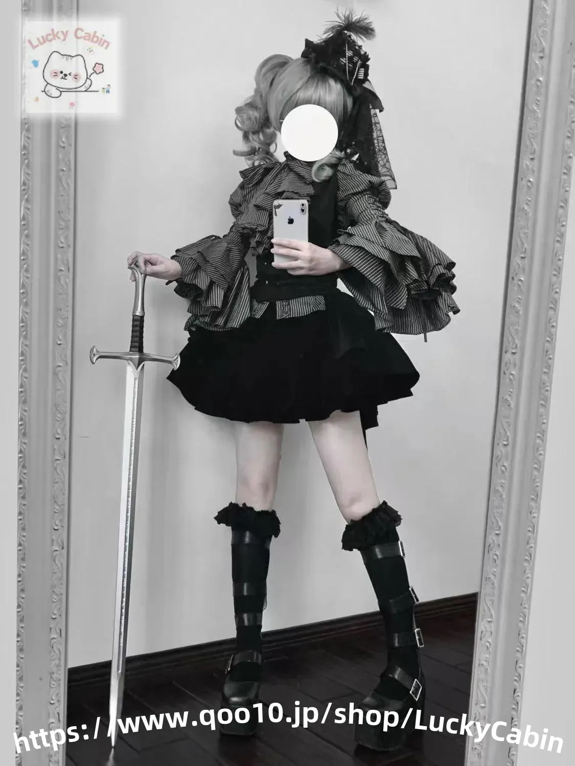 ロリータワンピース長袖パッチワークシャツフィットベストハイウエストポンポンケーキスカート3点セット脚魅せミニスカートハロウィン コスプレ ロリータハロウィン仮装