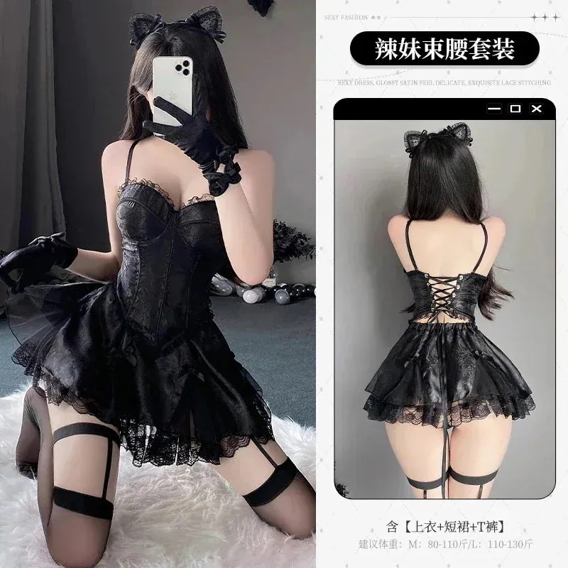 エロいコスプレ 制服 セクシー なレース スチールブラケットを集めて身を束ねたベストボディのポンポンスカート 情趣下着 用品 エロい下着 パジャマ セットアップ レディース