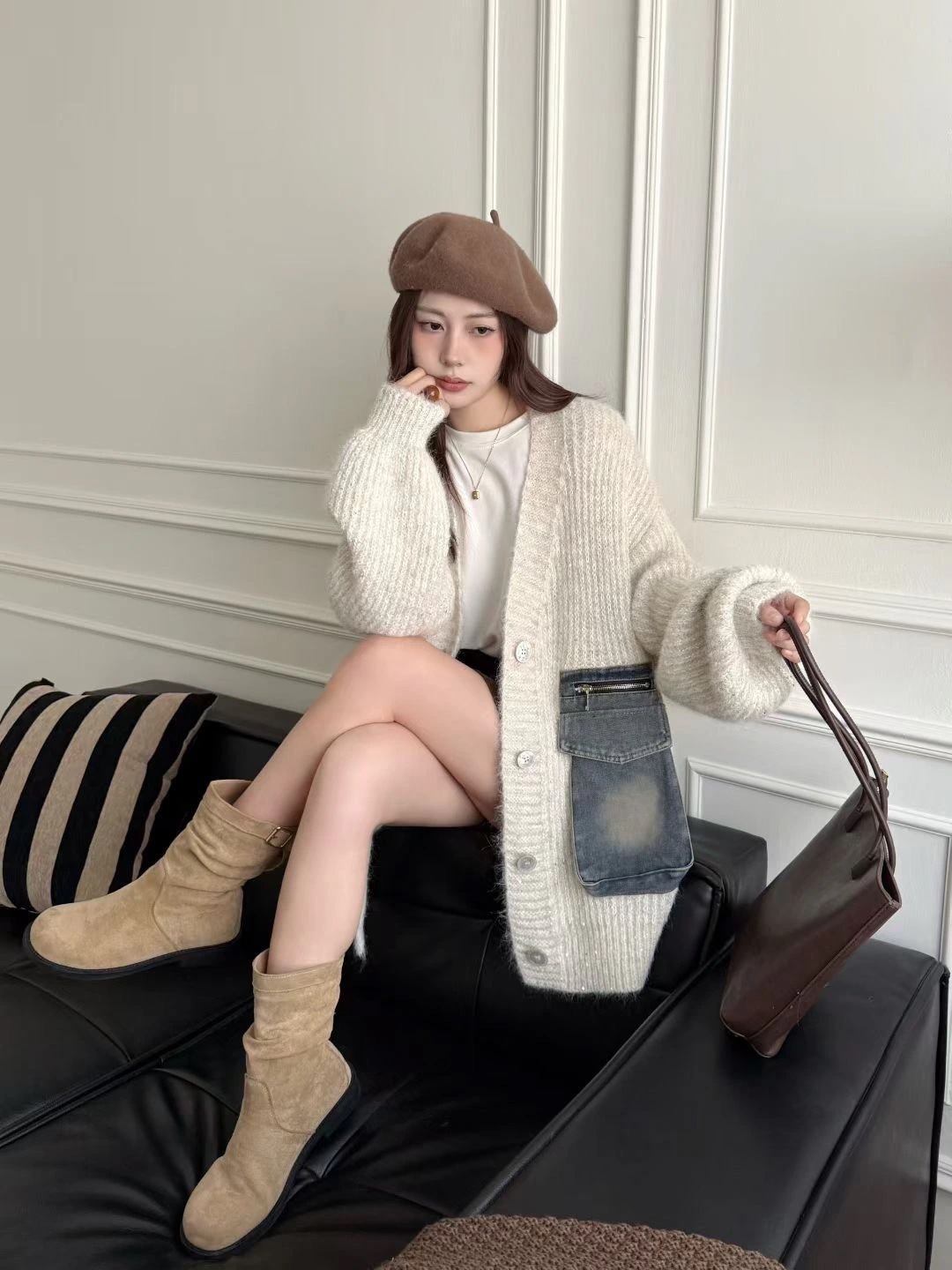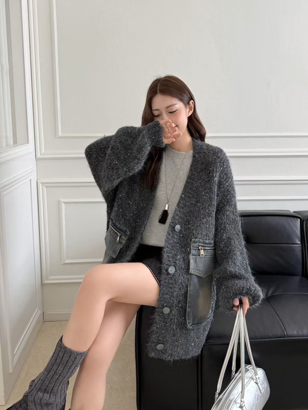 超美しいゆったりとした怠惰なスタイルのニットカーディガンレディース秋冬韓国版高級ミドル丈セータージャケット