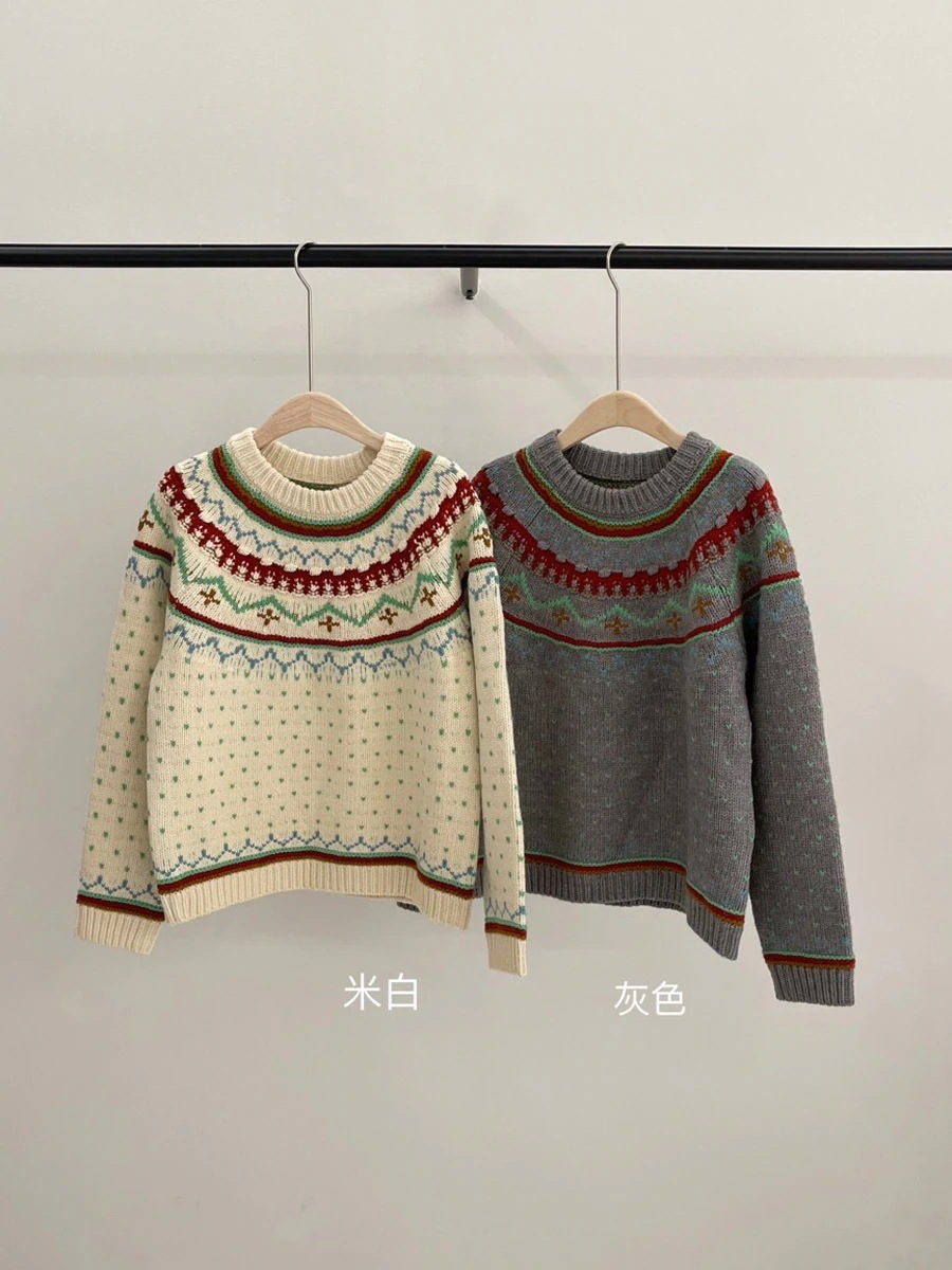 レトロなセーターレディース秋冬ソフトでゆったりとしたレイジースタイルのジャカードニットトップ厚手