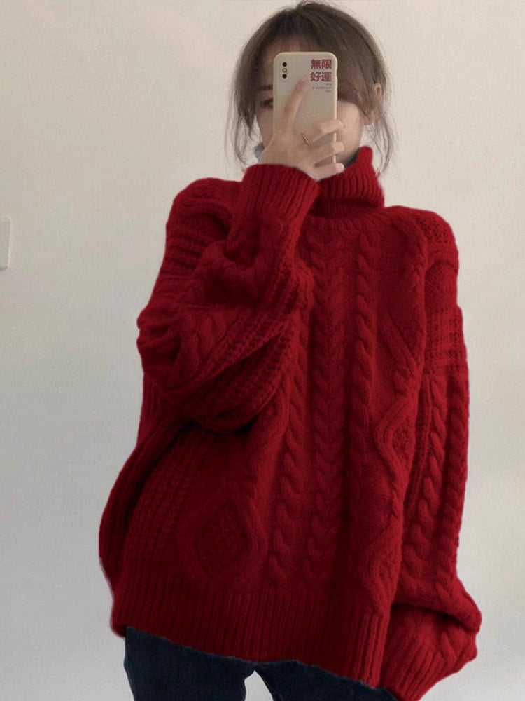 2025年新年 レッド タートルネック セーター レディース 厚手 プルオーバー 冬 ゆったり ゆったり 星座 ニットトップス アウター