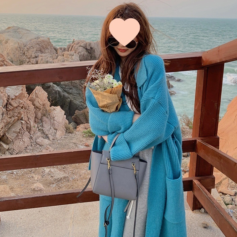 ブルーラペルロングセーターレディース秋冬ゆったり暖かいソフトもちもちルーズニットカーディガンジャケット春秋