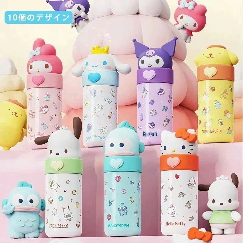 ファーウェイ 最安値挑戦 キティちゃんクロミちゃんマイメロポチャッコシナモロールポムポムプリンハンギョドバ 超軽量 保冷 保温 キッズ 魔法瓶 ステンレスボトル 350ml 蓋水筒 ふた付き