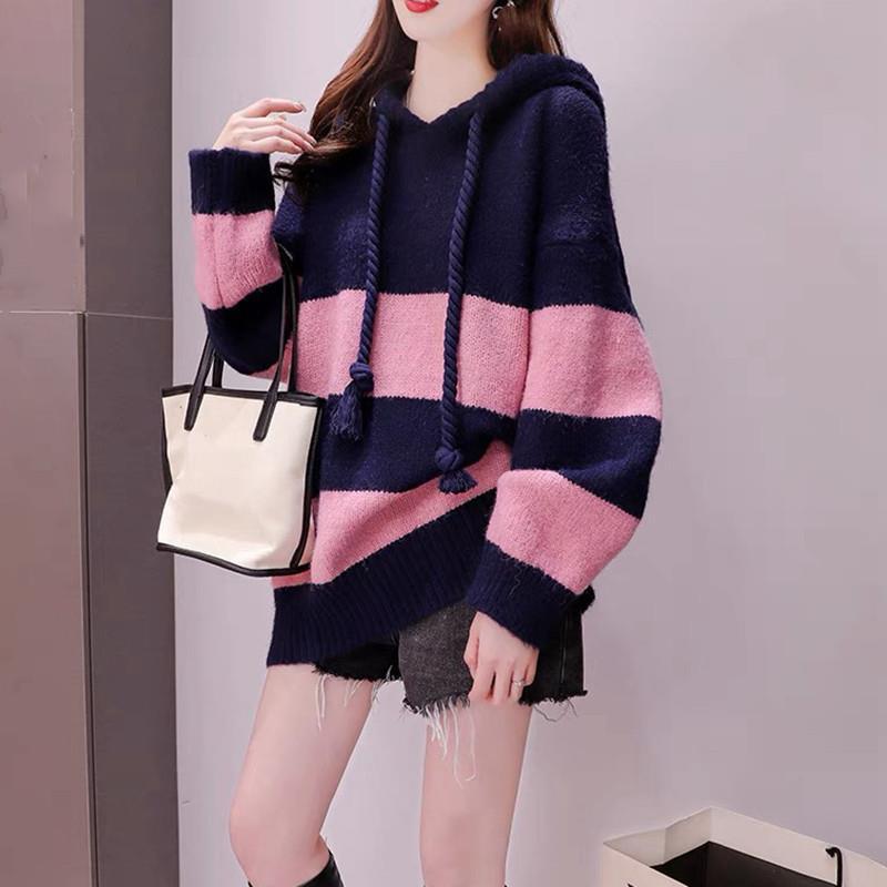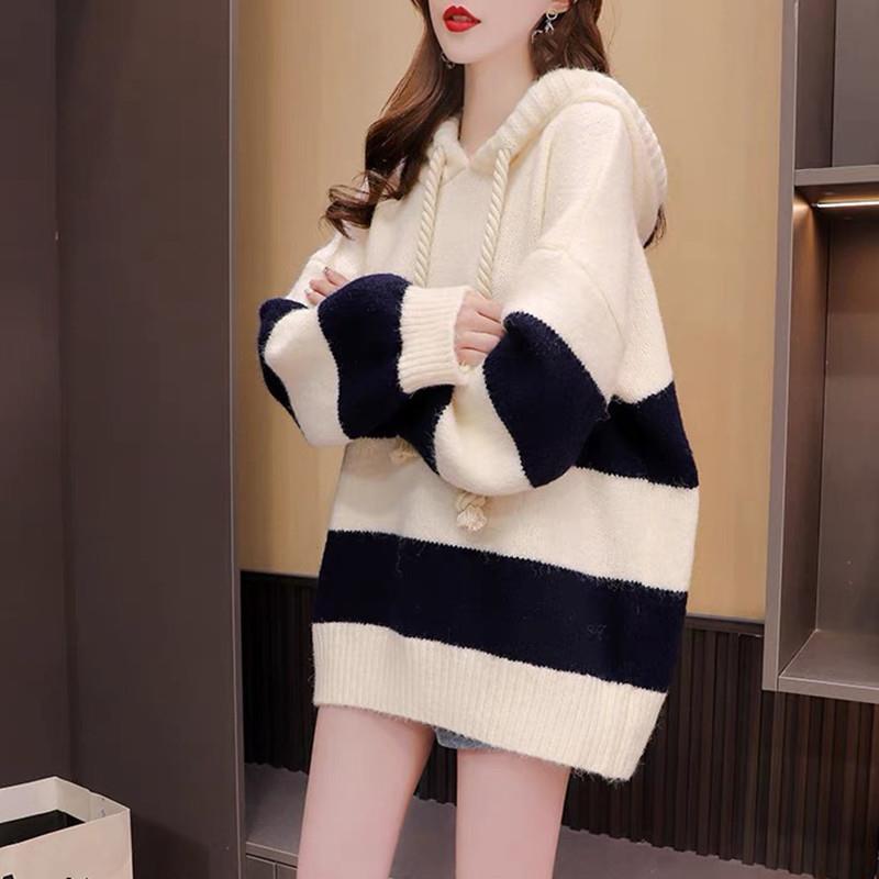 ゆったりとしたレイジースタイルのフード付きセーターレディース2025秋スタイリッシュなゆったりとした大きいサイズのニットセーターミドル丈コート