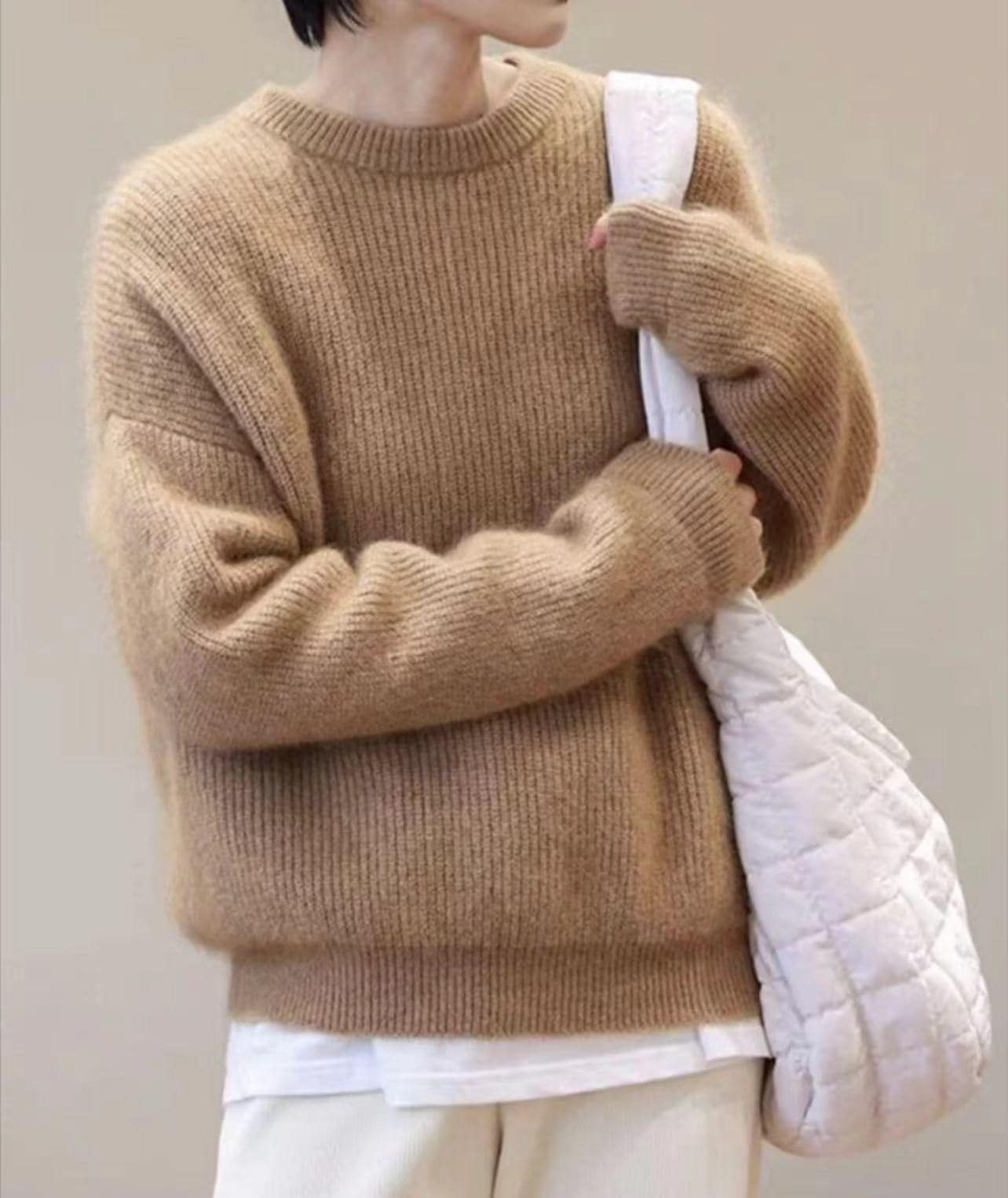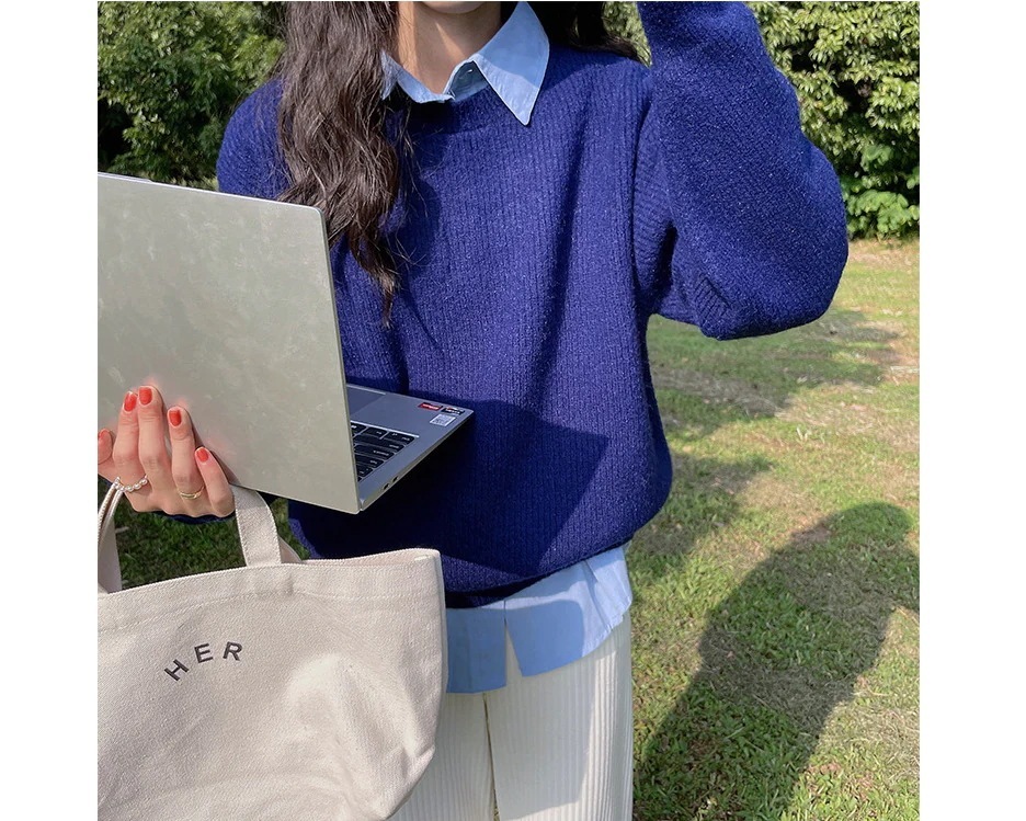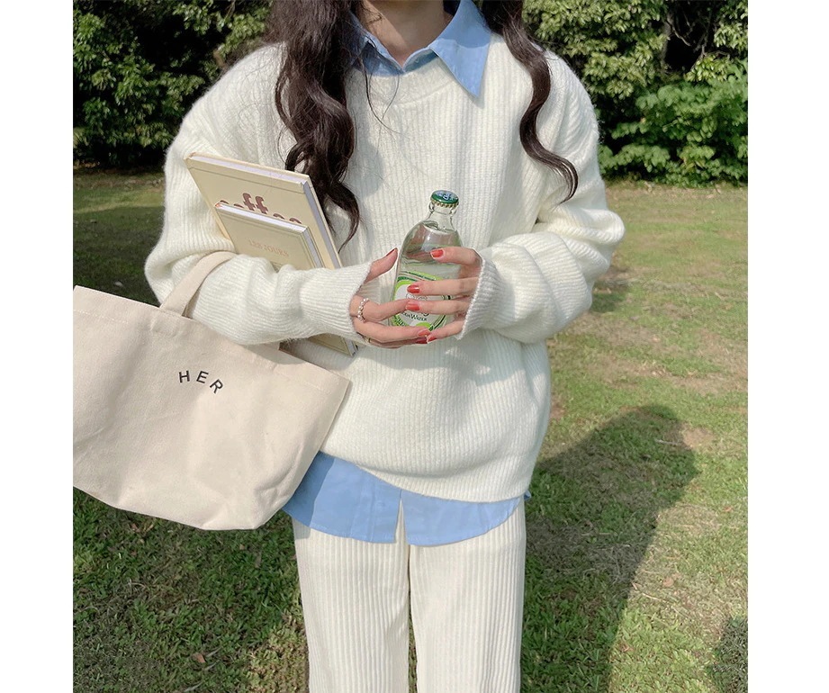 スーパーフェアリークリームイエロープルオーバーセーターレディースルーズレイジースタイルラウンドネックオールマッチ秋冬セーター