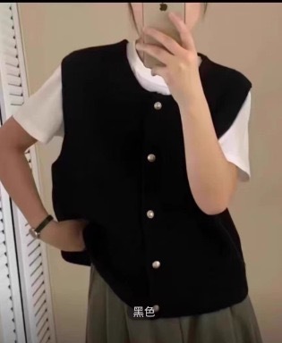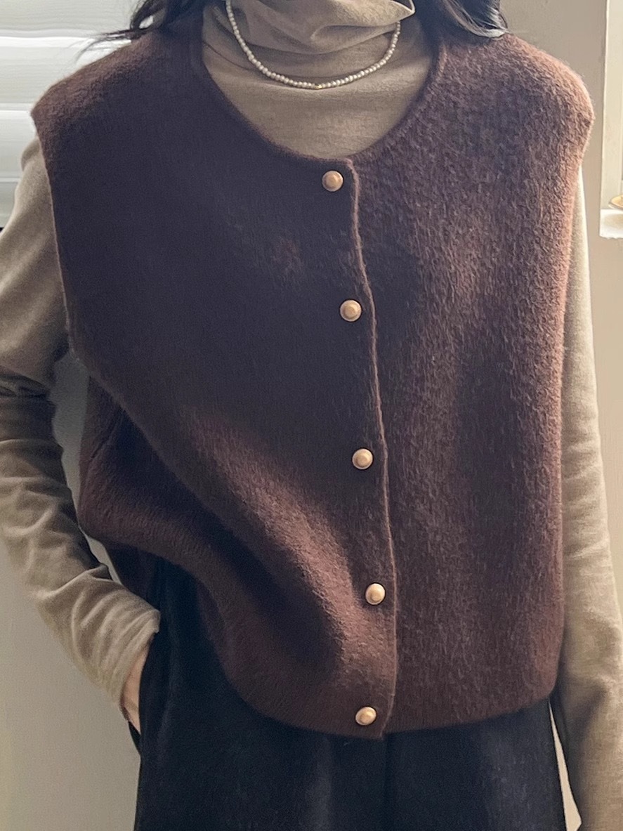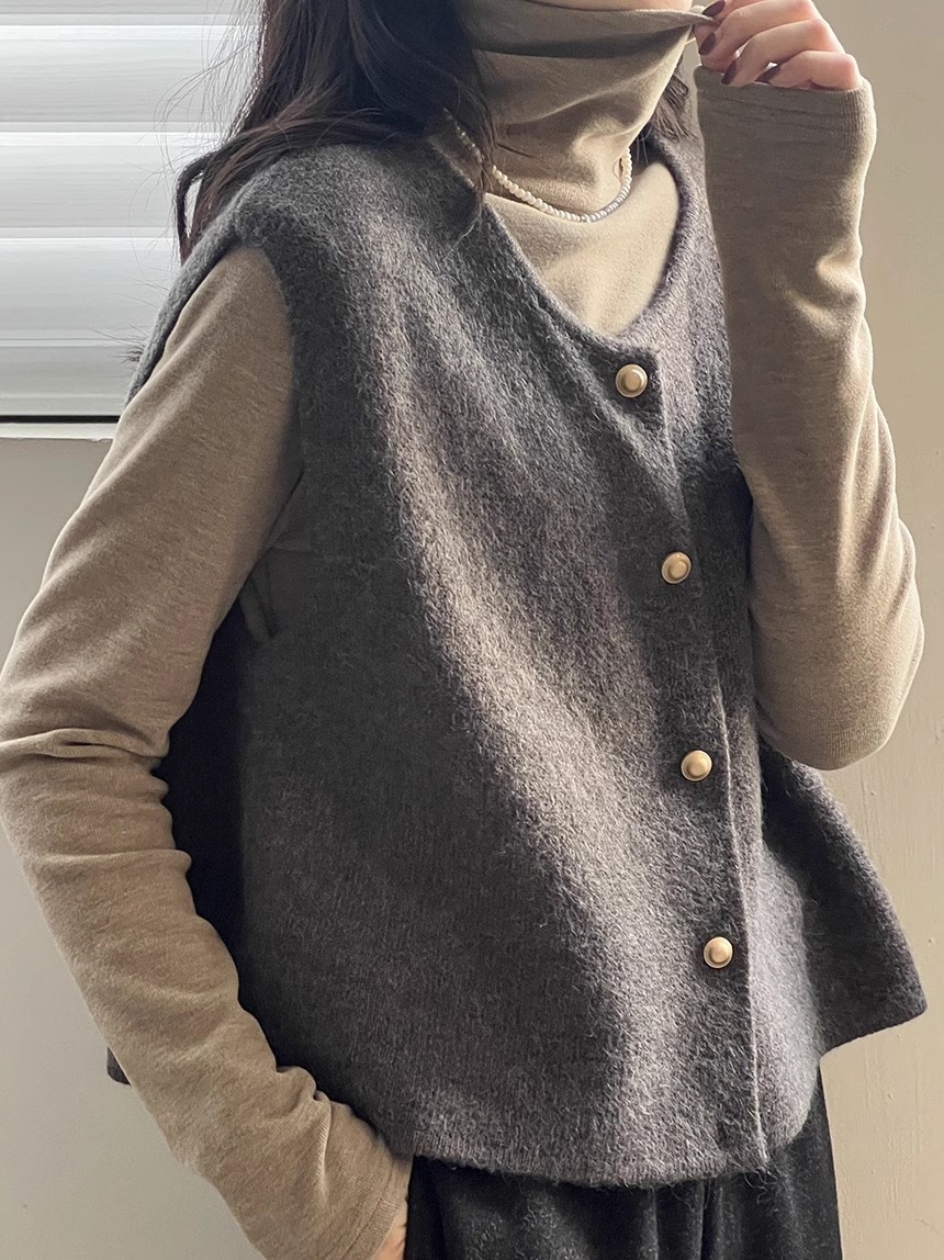 優しいシングルブレストの小さな金ボタンのラウンドネックのスリミングニットベストレディース韓国のゆったりとしたウエストコートトップレディース