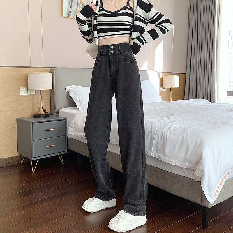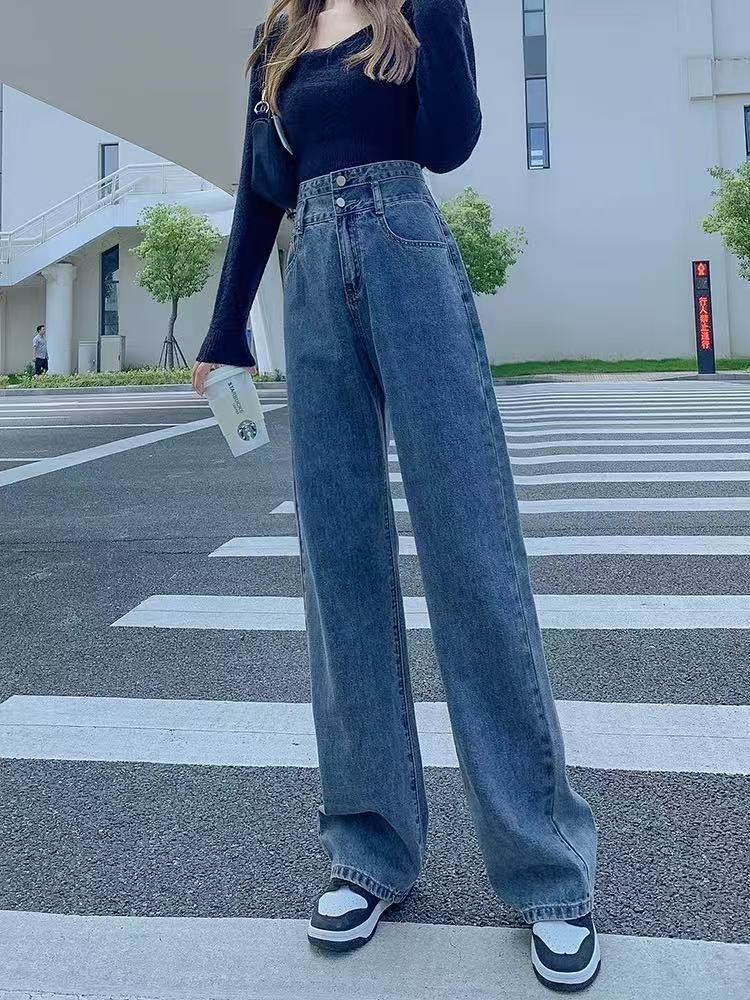 ジーンズ 2025夏新作 ハイウエスト ワイドデニムパンツ 超ロング丈 ストレートシルエット 小柄さん対応 スリム効果 垂れ感デニム