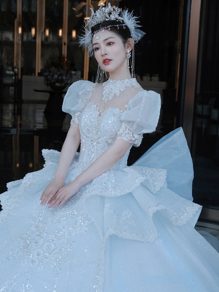 ブループリンセスウェディングドレス2025花嫁メインヤーン小宮殿スタイルハイエンド重工業夏