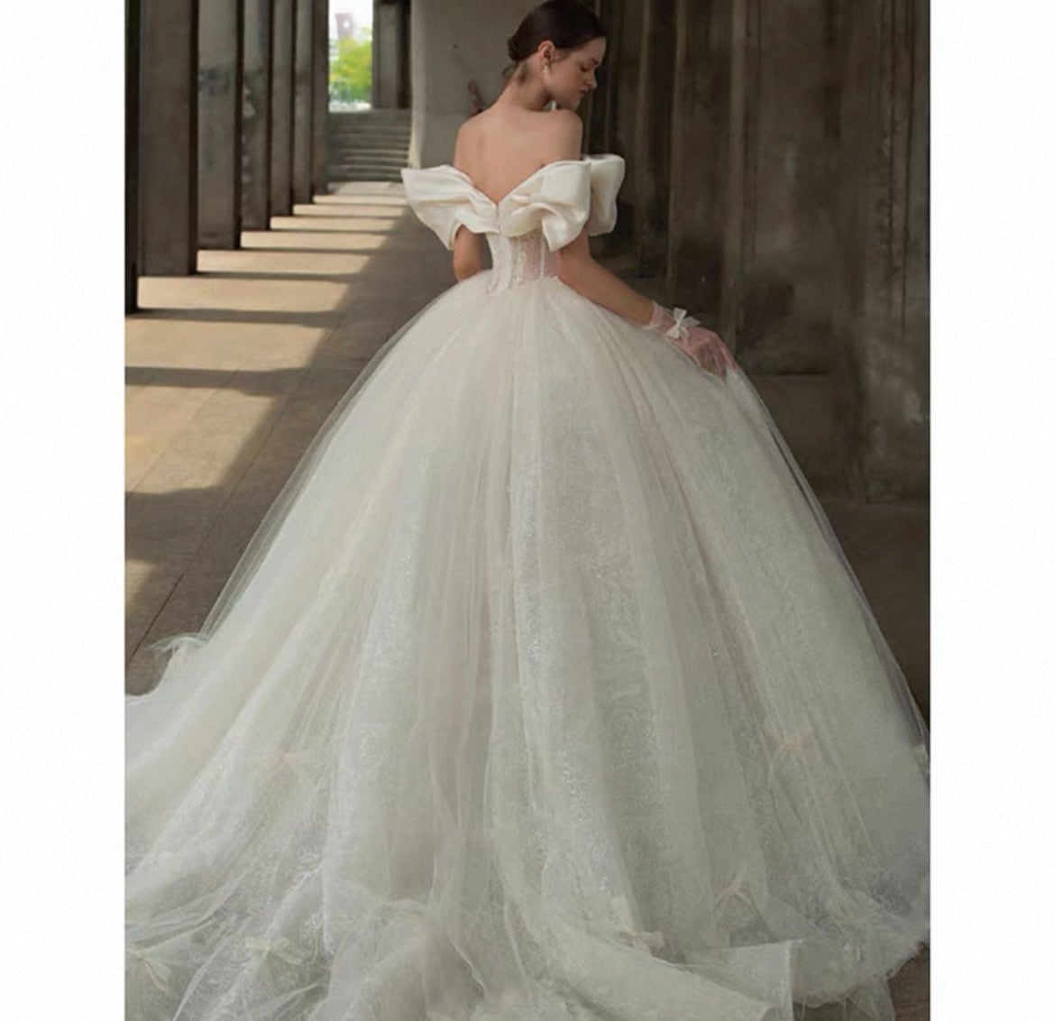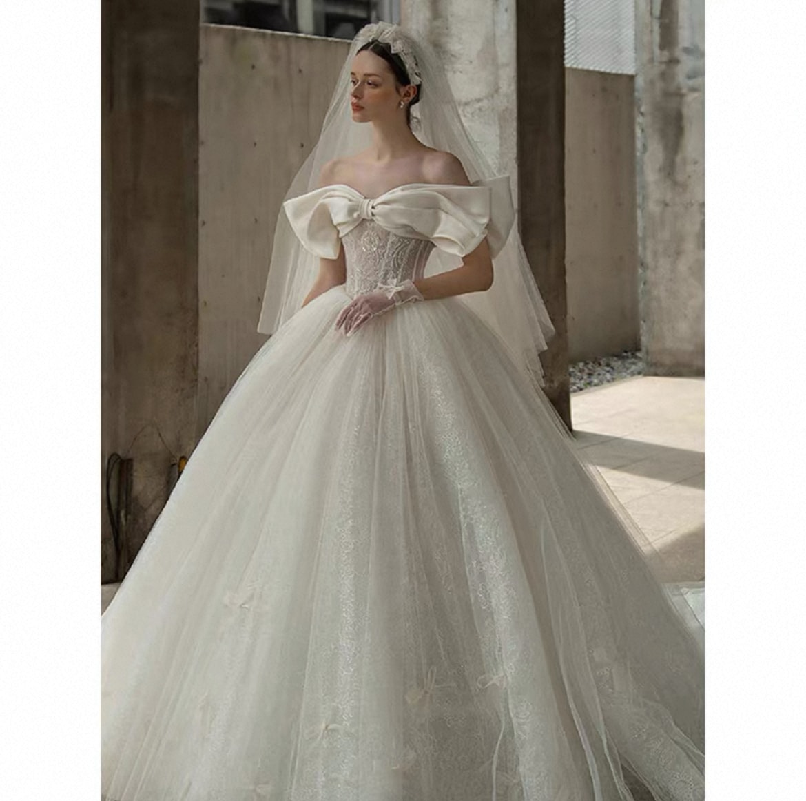 2025年花嫁のためのワンショルダーウェディングドレスエレガントなメインガーゼの質感宮殿スタイル豪華なロングトレーン