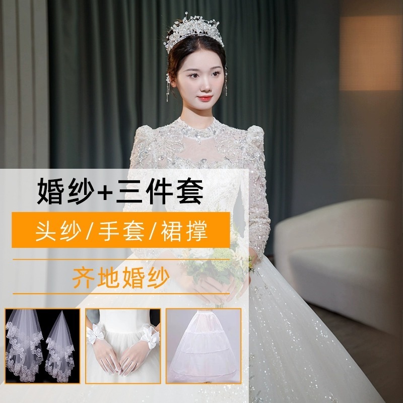 ウェディングドレス 2025 花嫁メインヤーン高品質テクスチャロングスリーブガウンレディースヘビーデューティーラグジュアリーウェルカムヤーンラージテール