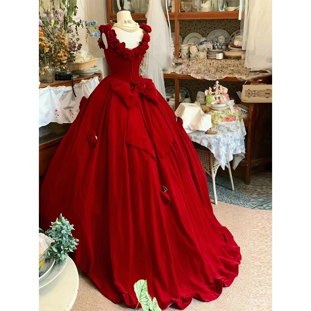 赤いウェディングドレス軽くてレトロな美しい誕生日の写真成人式小柄な婚約花嫁のトーストドレス