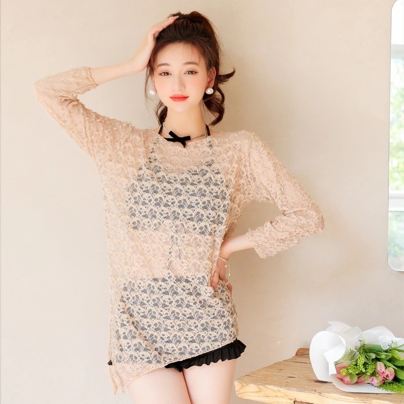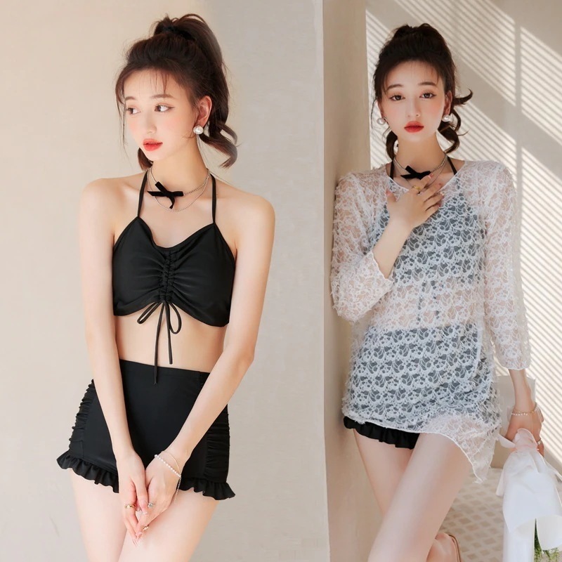 ひんやりボトムス 水着/三点セット/セット/2024/新作/夏/スプリット水着/レディース/ビーチ/インスタイル/セクシー/薄手/カバーアップ水着 水着セット