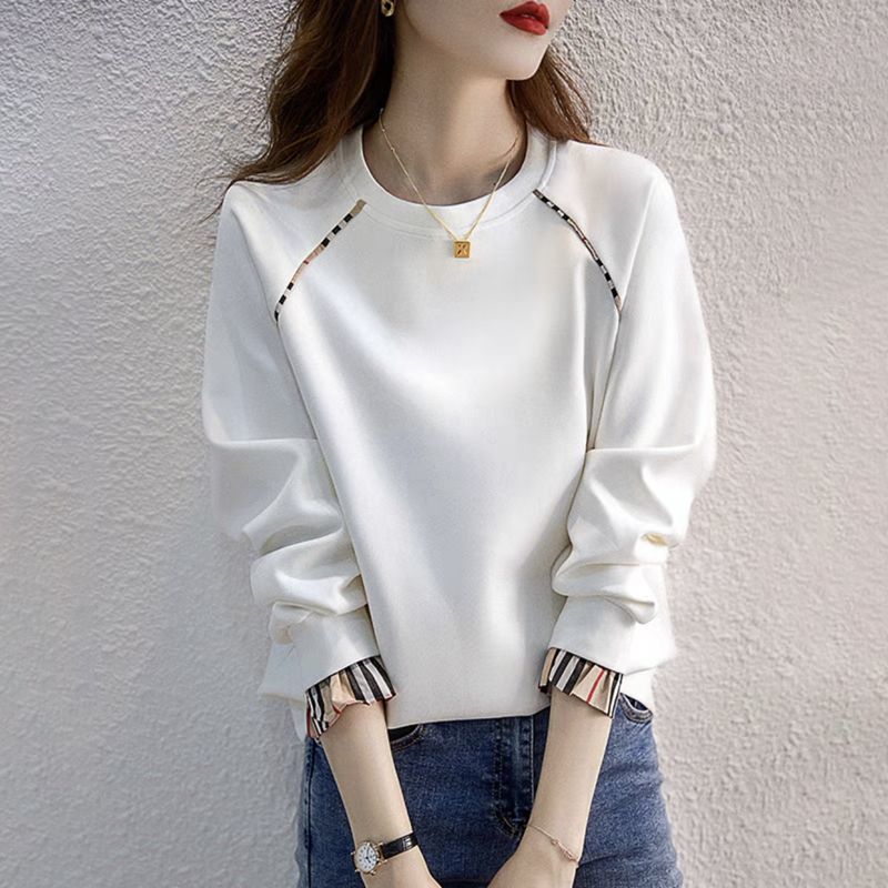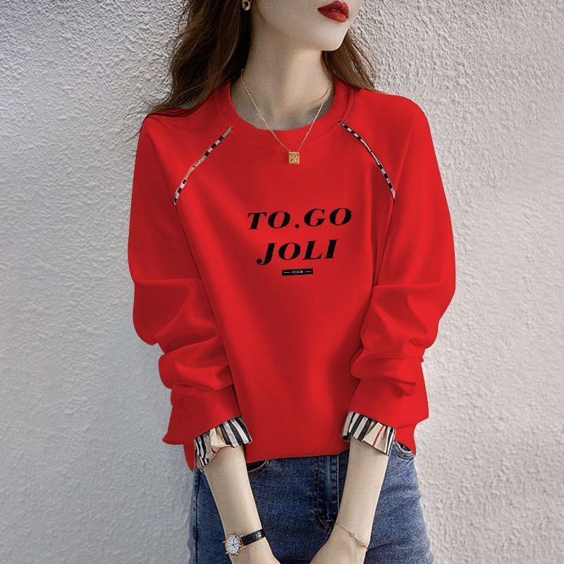 韓国ファッション キャップなしゆったり ヘッダー長袖丸襟 偽2枚の上着 薄手 スウェットフーディー ラ