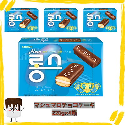 クラウン製菓【韓国人気製品】ニュースティックス (ロンス) 220g × 4個セット / 韓国お菓子 チョコケーキ スティック デザート 個包装 K-food