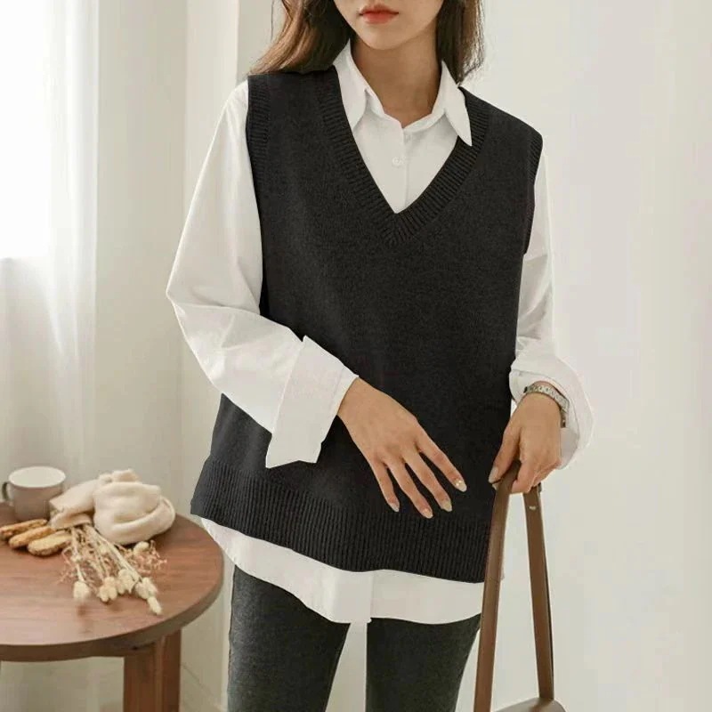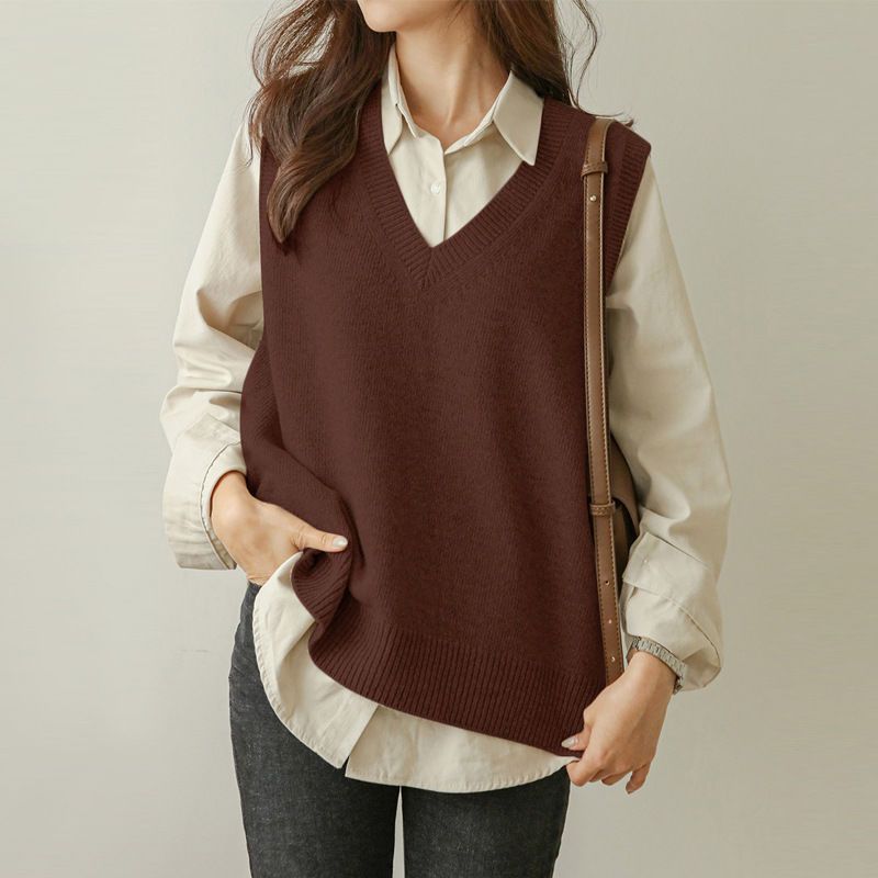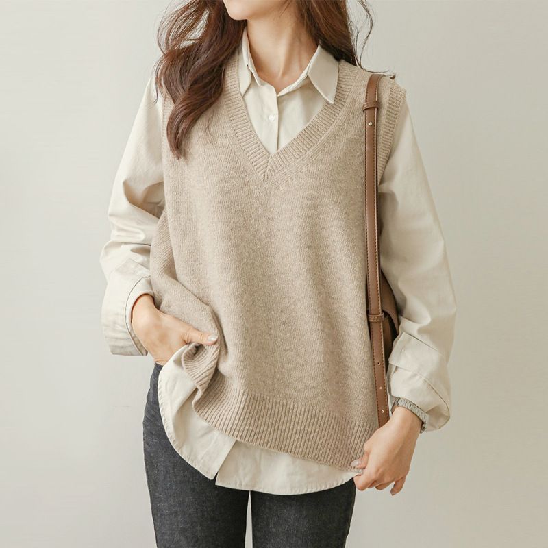 ベスト ニット レディース 秋冬 ふんわり ニットベスト トップス vネック ノースリーブ 重ね着風 韓国風 レイヤード シンプル プルオーバー おしゃれ 無地 カジュアル ナチュラル ゆったり 通勤
