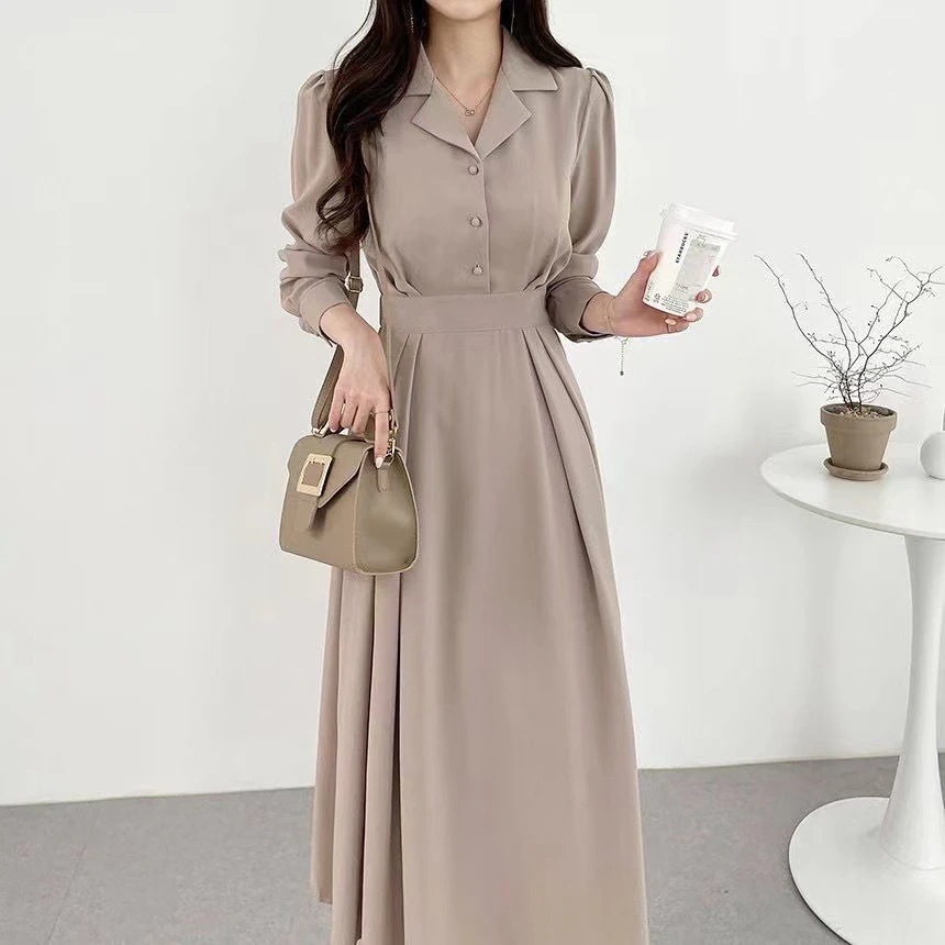 ワンピース 長袖 ロング丈 きれいめ 春 秋 ロングワンピース Aライン 体型カバー 大きいサイズ シンプル カジュアル ゆったり 楽ちん お洒落 リゾート 上品 旅行 海 オフィス フォーマル 通