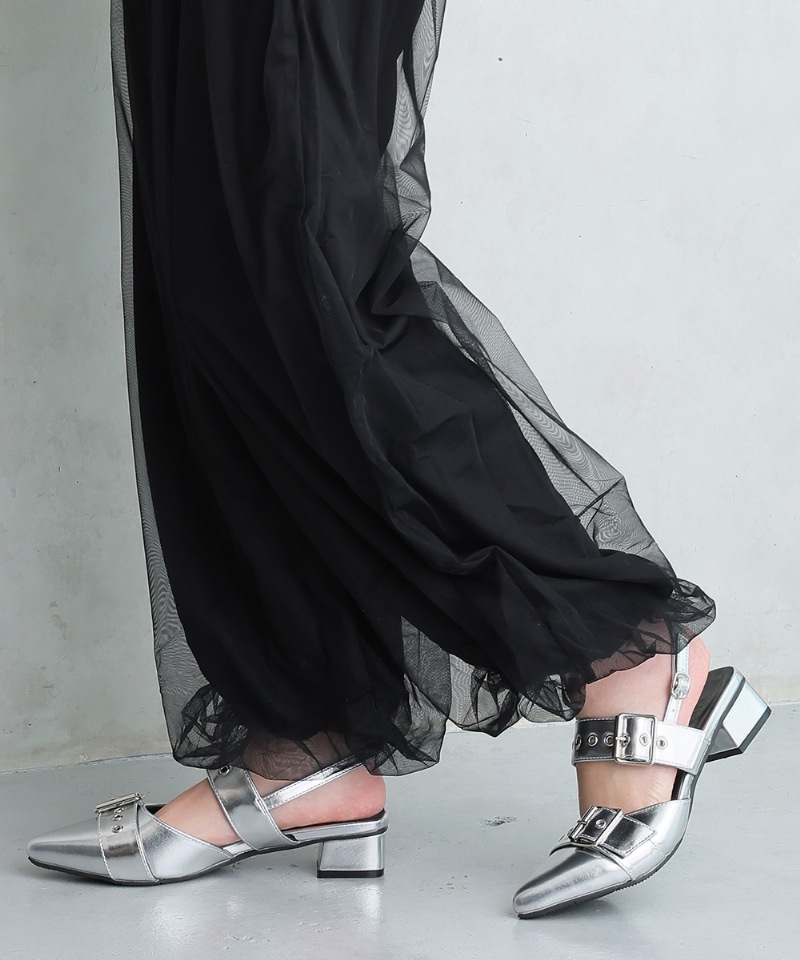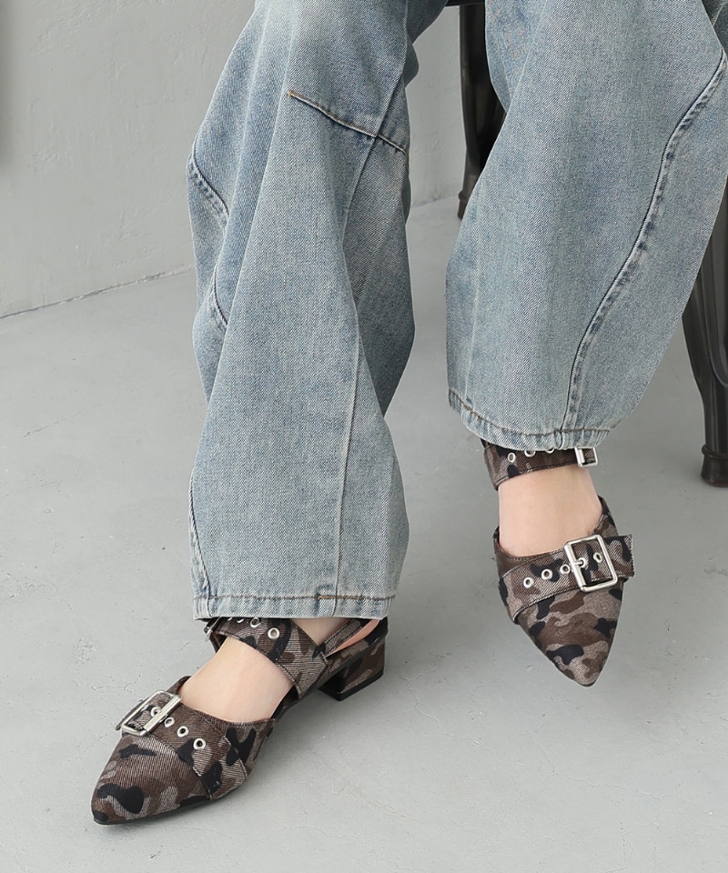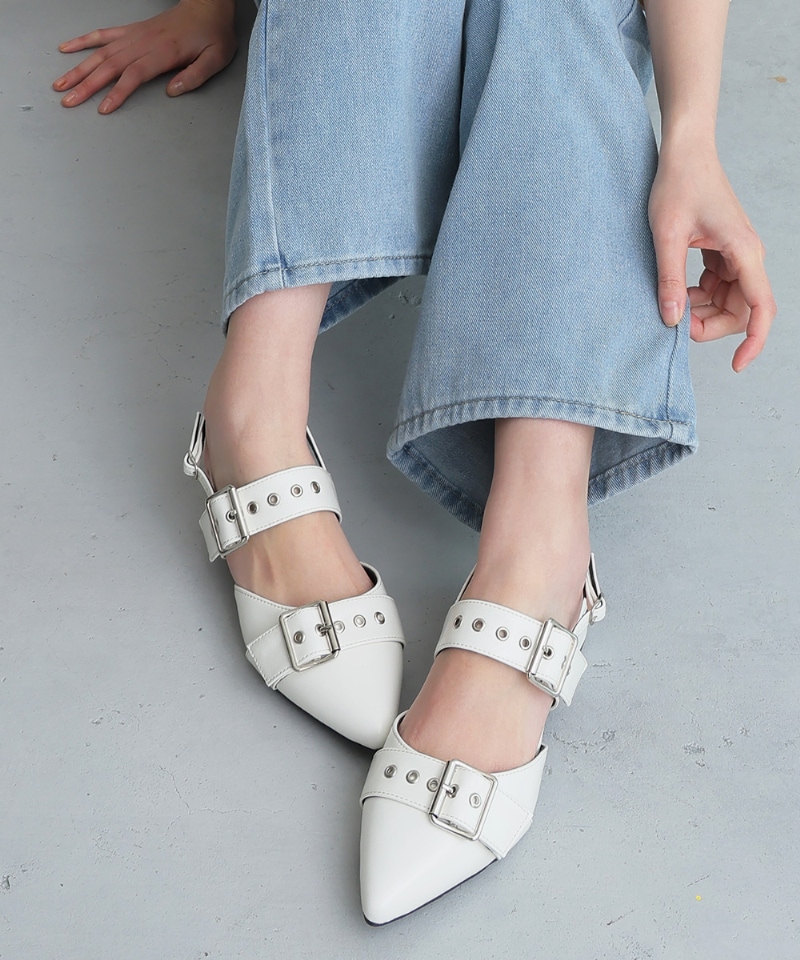 ポインテッドトゥ バックルベルト ストラップパンプス