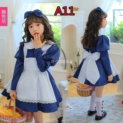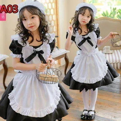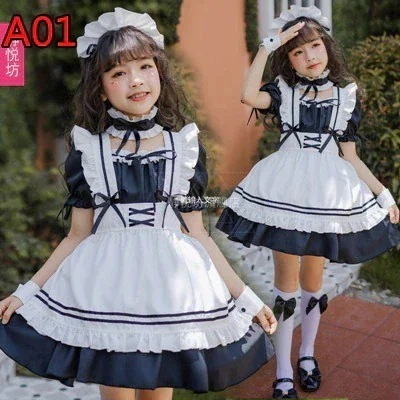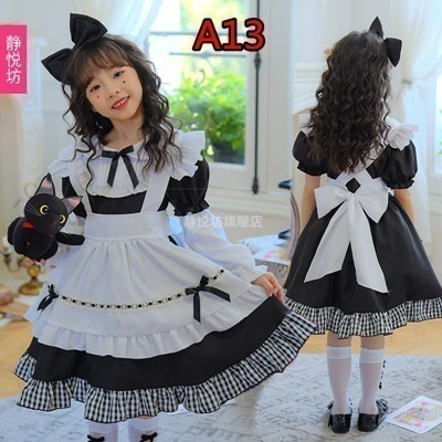 入荷ハロウィンコスプレ 子供用 メイド服セット可愛いロリータ子ども白黒メイド服 コスプレ女の子ビッグサイズ マルチスタイルセット仮装