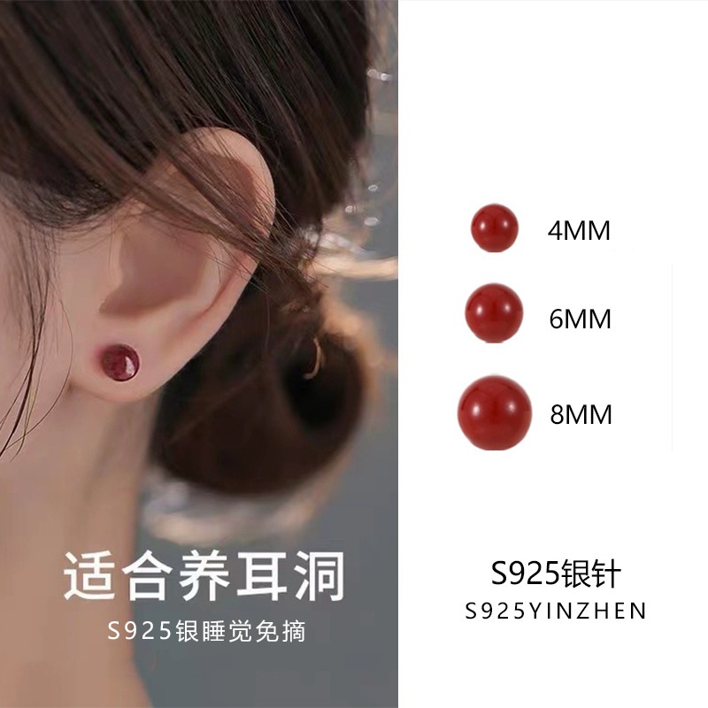 S925シルバーピアス 朱砂パール組み合わせ 縁起物耳骨ピアスレディース