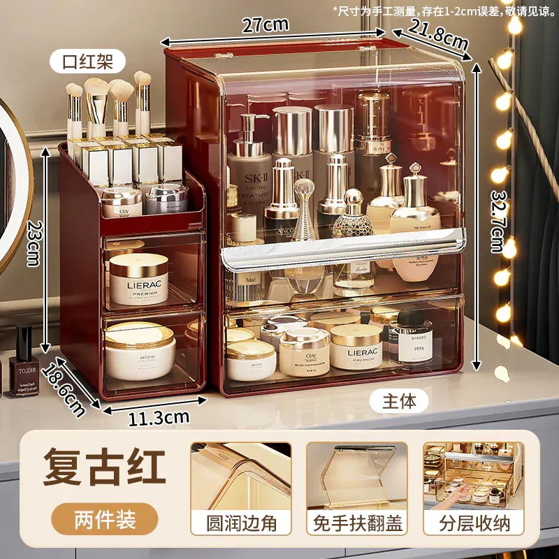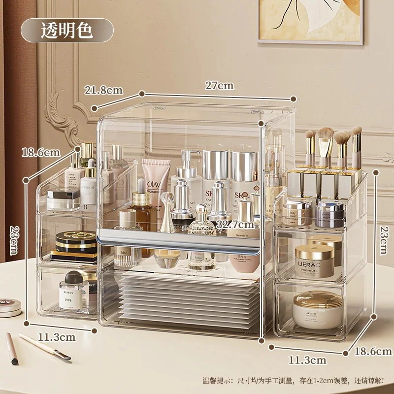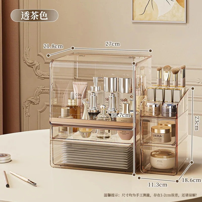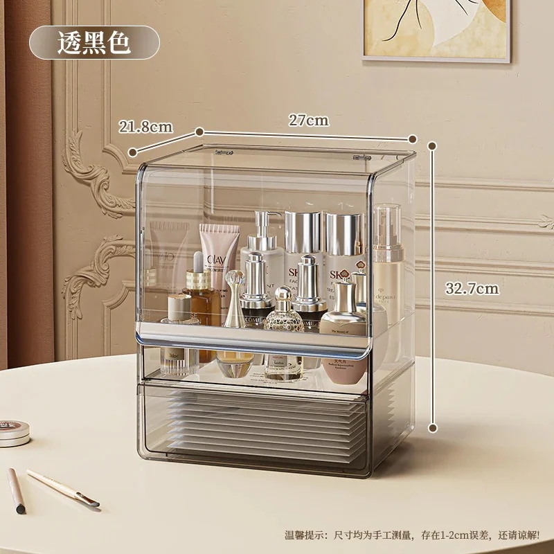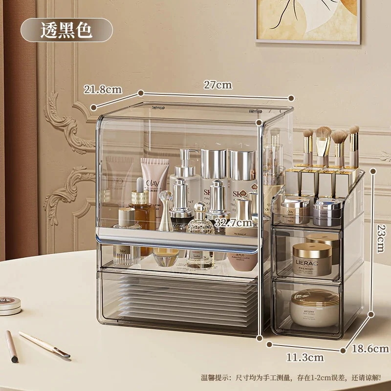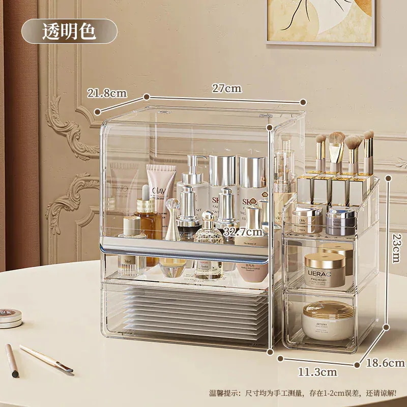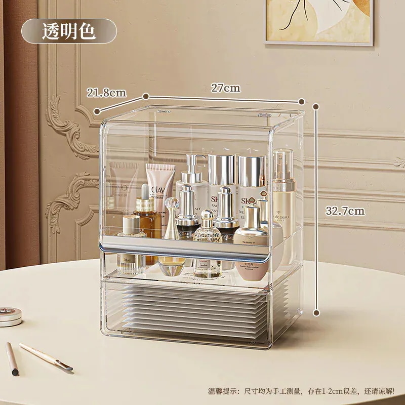 アクリル化粧品収納ボックス デスクトップ防塵化粧台 整理ボックス スキンケア用品・口紅用スタンド 透明キャビネット 化粧ポーチ