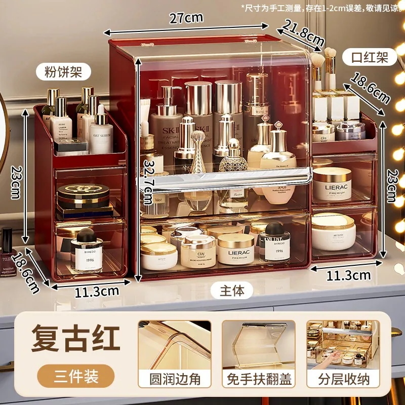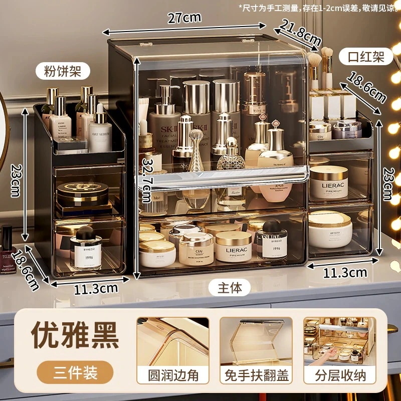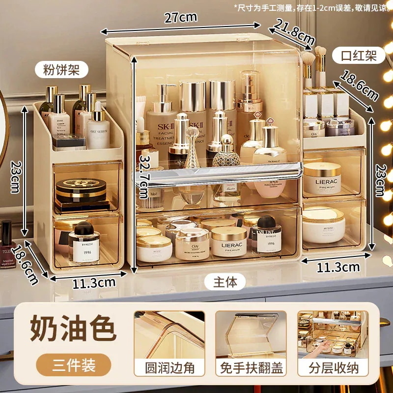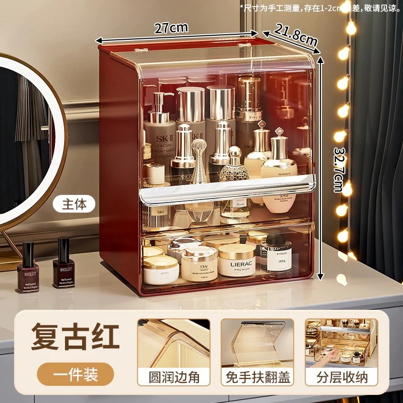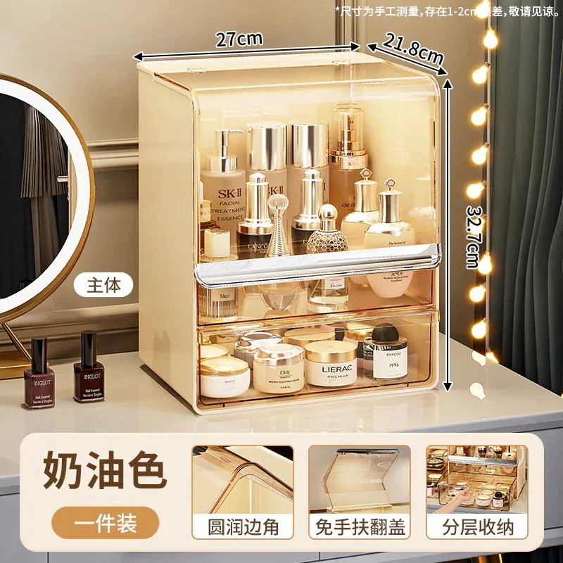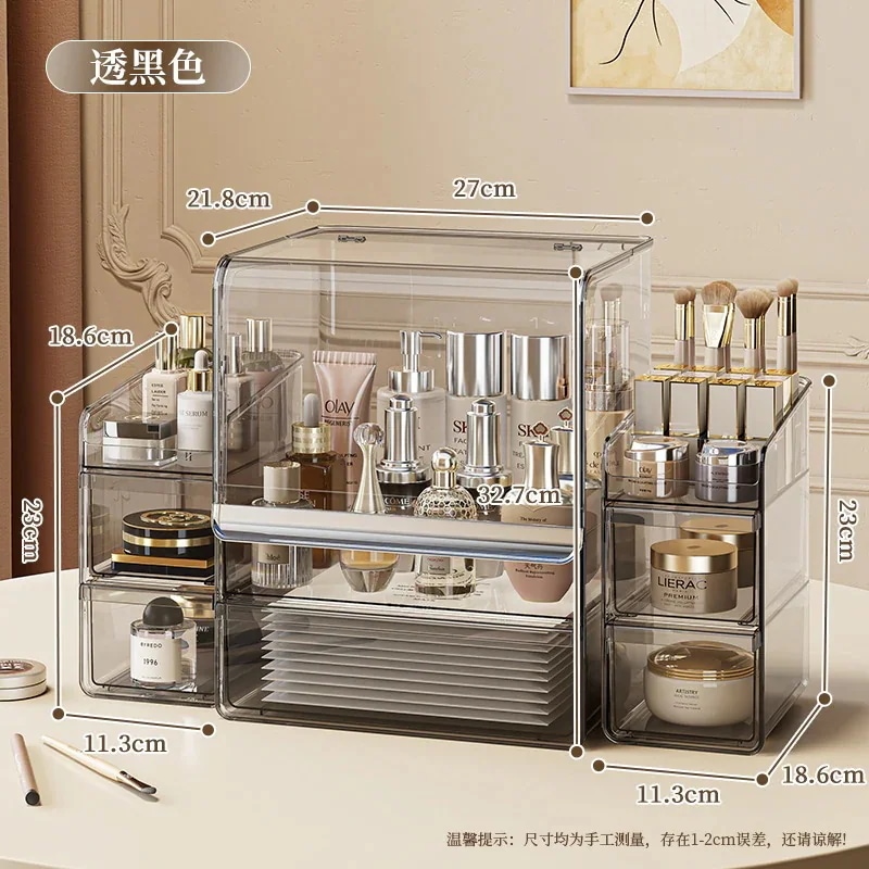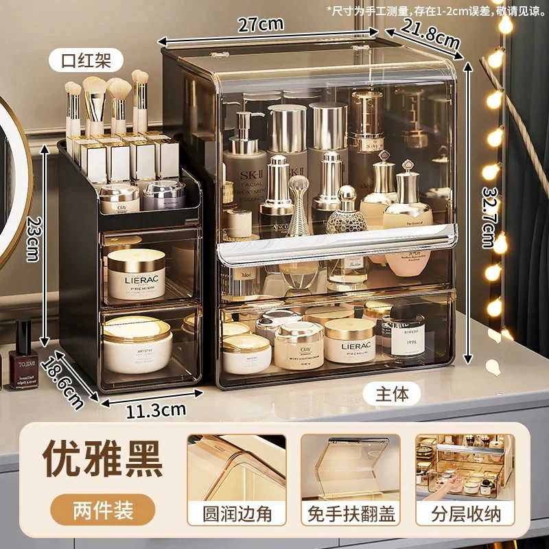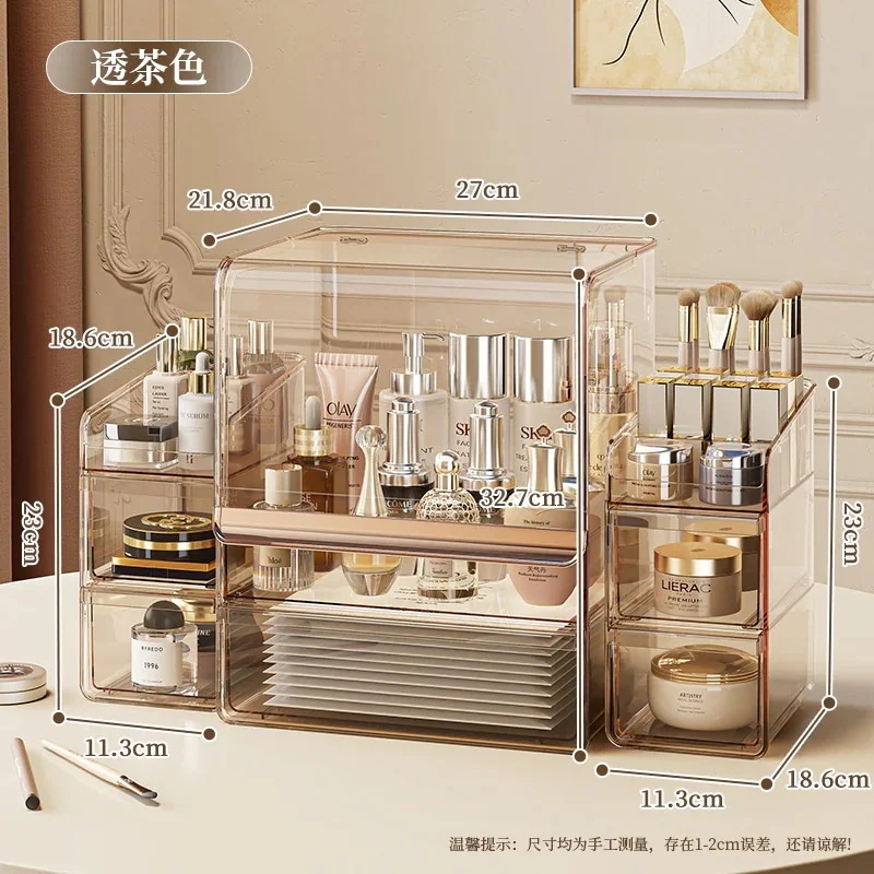 アクリル化粧品収納ボックス デスクトップ防塵化粧台 整理ボックス スキンケア用品・口紅用スタンド 透明キャビネット 化粧ポーチ