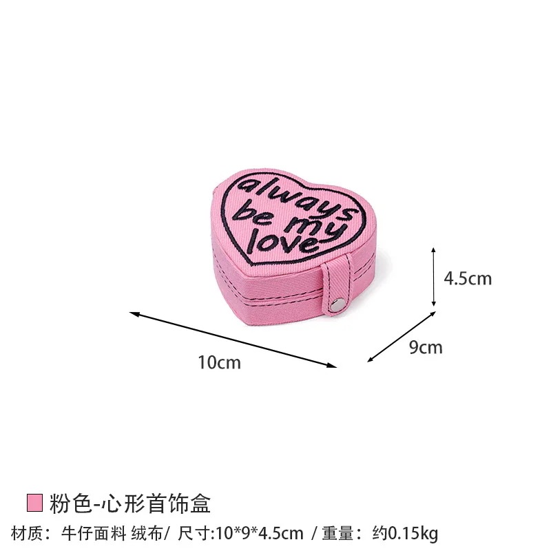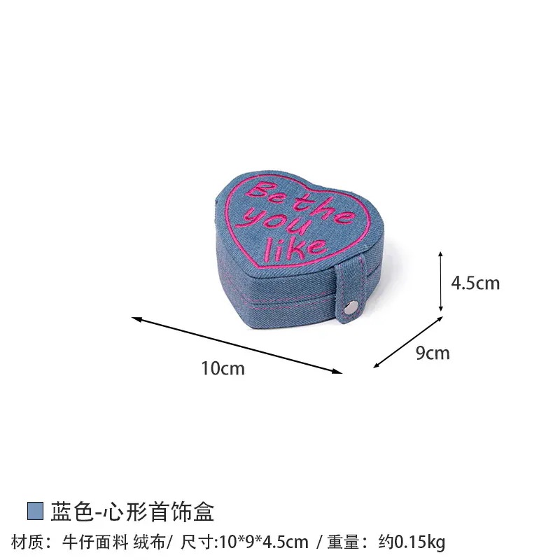レトロミニハート型ジュエリーボックス 携帯用刺繍デニムリング収納ボックス