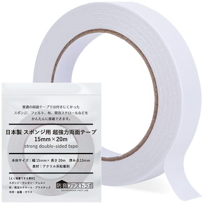 日本製【 接着しにくい素材に特化 】防音ファストラボ スポンジ用 超強力両面テープ 15mm×20m 吸音材 緩衝材 ウレタン フェルト 布 発泡スチロール の貼り付けに