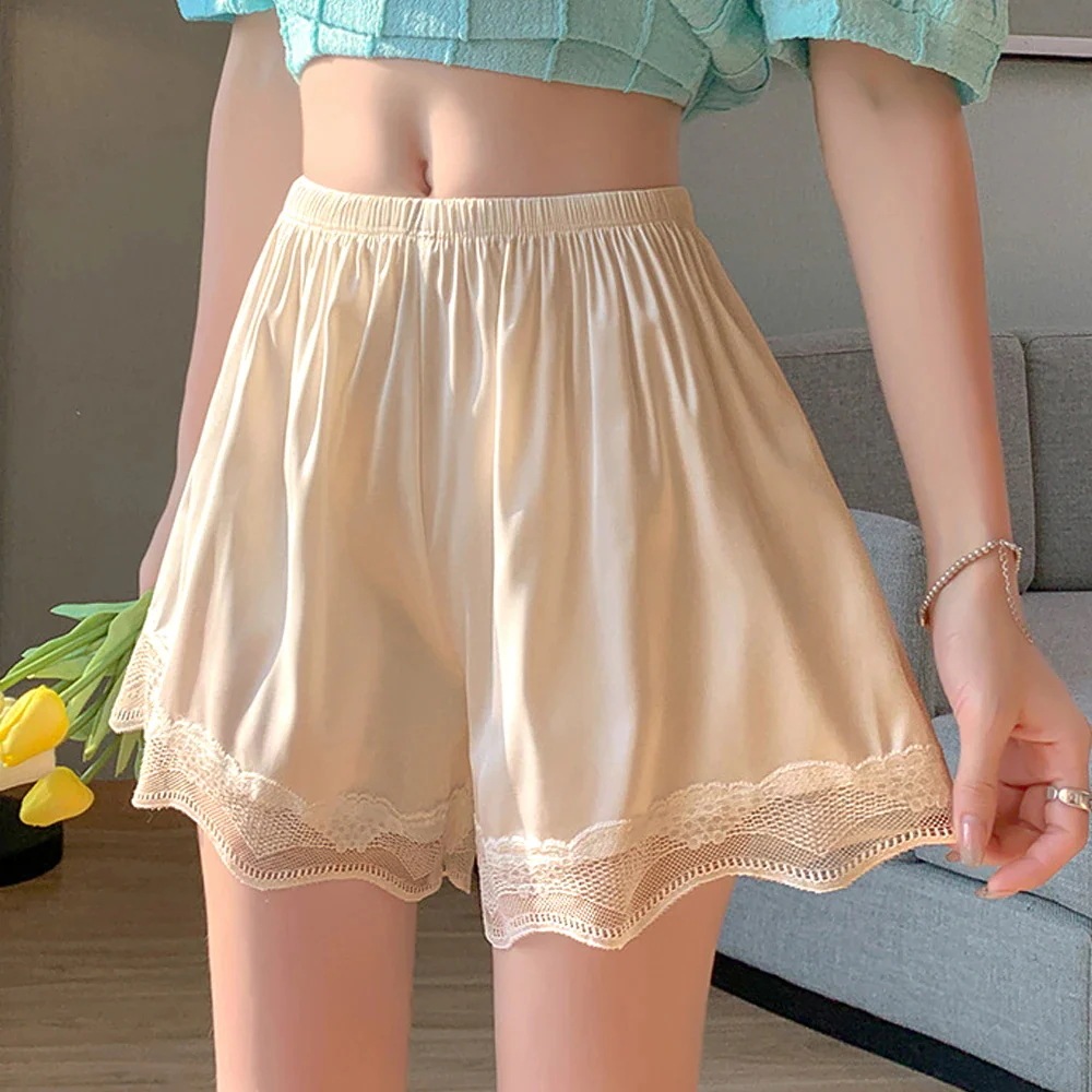 3枚セット レースショートパンツ 裾 ペチコート パンツ 透けない ロング 抗菌防臭 接触冷感 冷感素材 ウエスト 夏 インナー ペンチパンツ 涼しい 快適