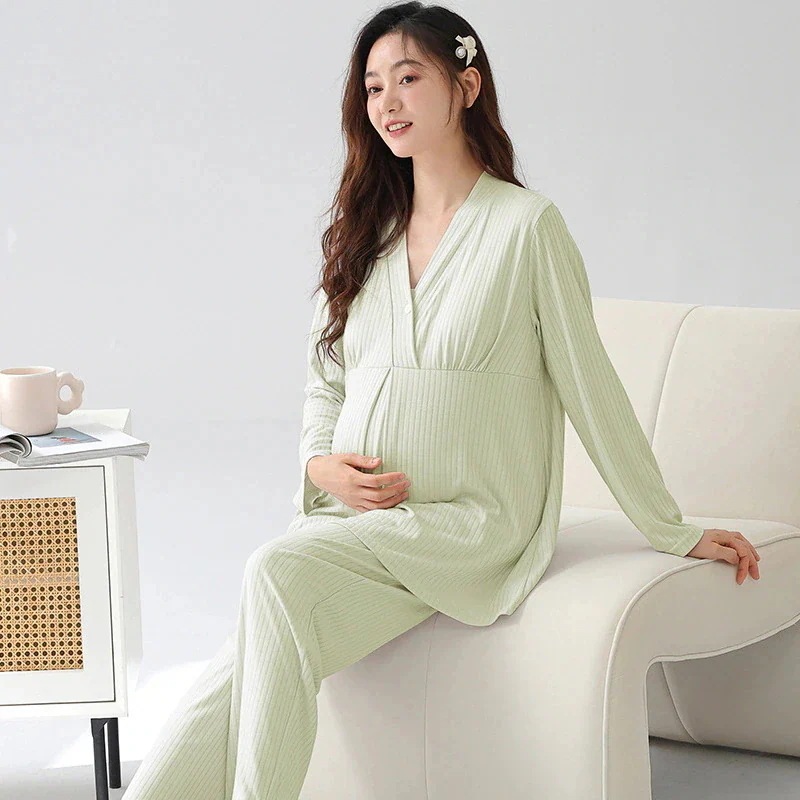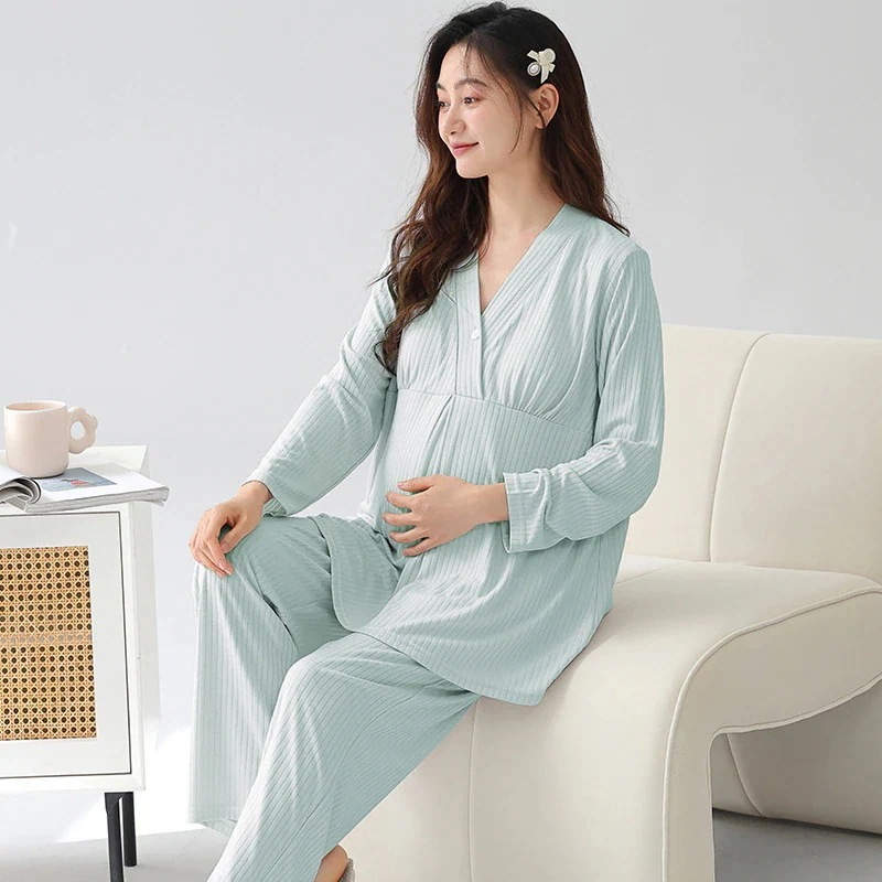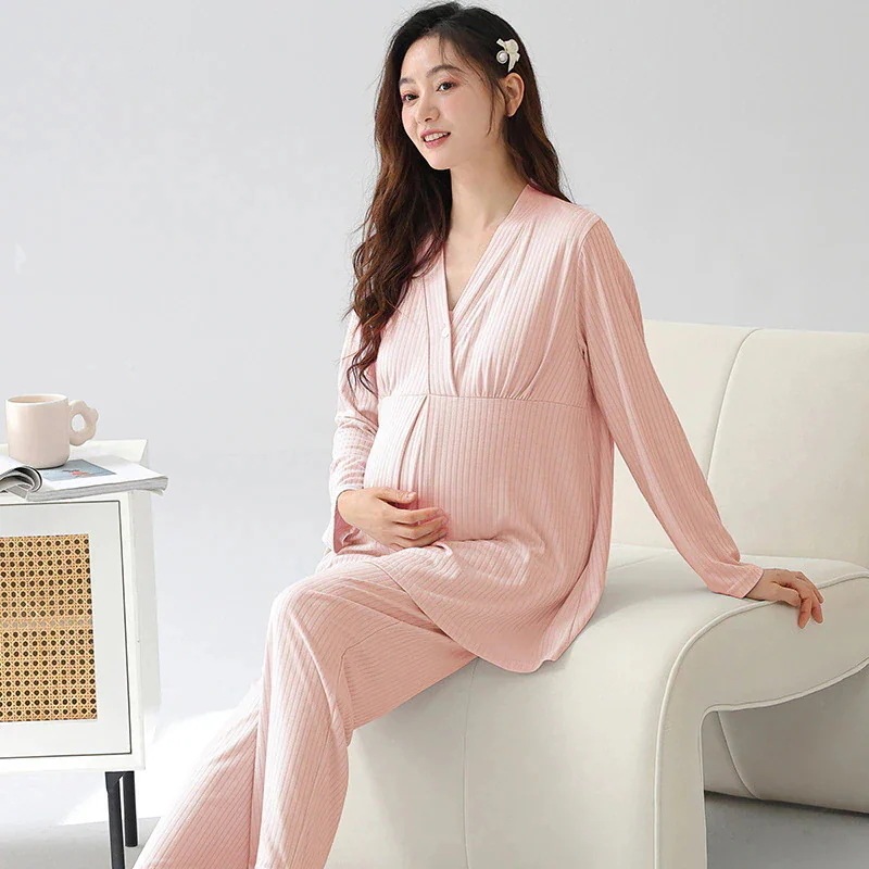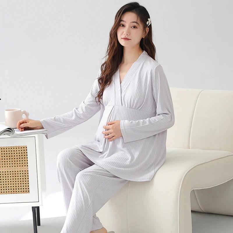 胸クッション月衣春と夏のパジャマ女性モダルコットンマタニティ薄いセクション汗通気性授乳ホームウェアと秋