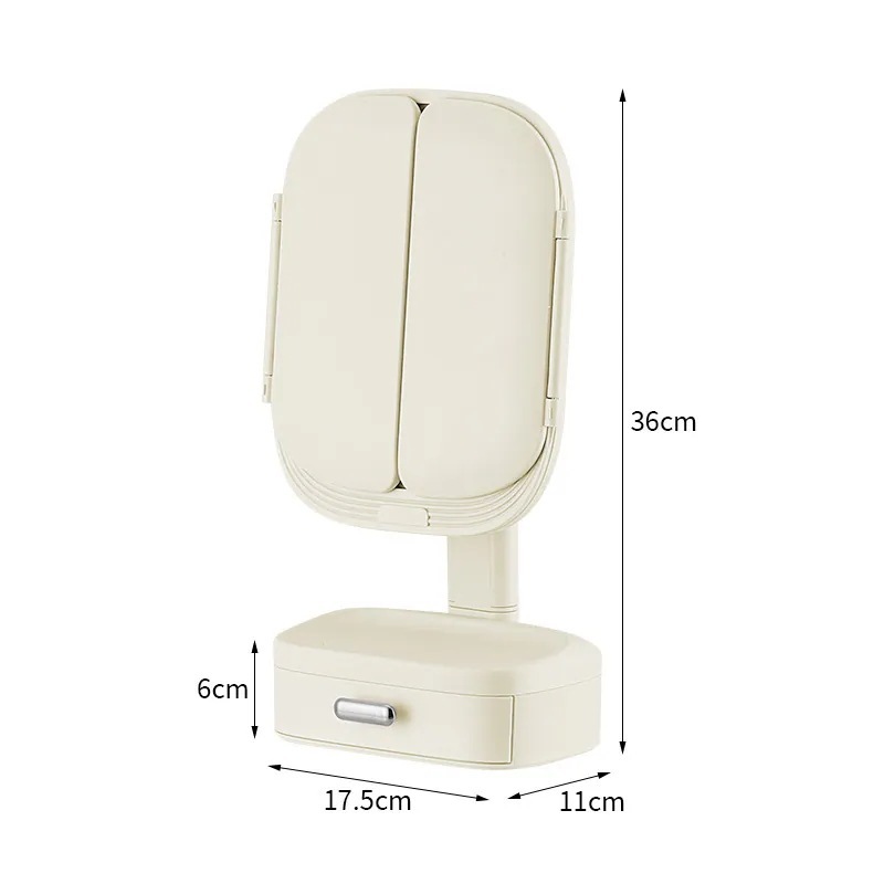 デスク収納ボックス化粧台開閉式ミラー付き化粧鏡ライト付きスタンド式回転可能多機能ベッドルーム美容鏡