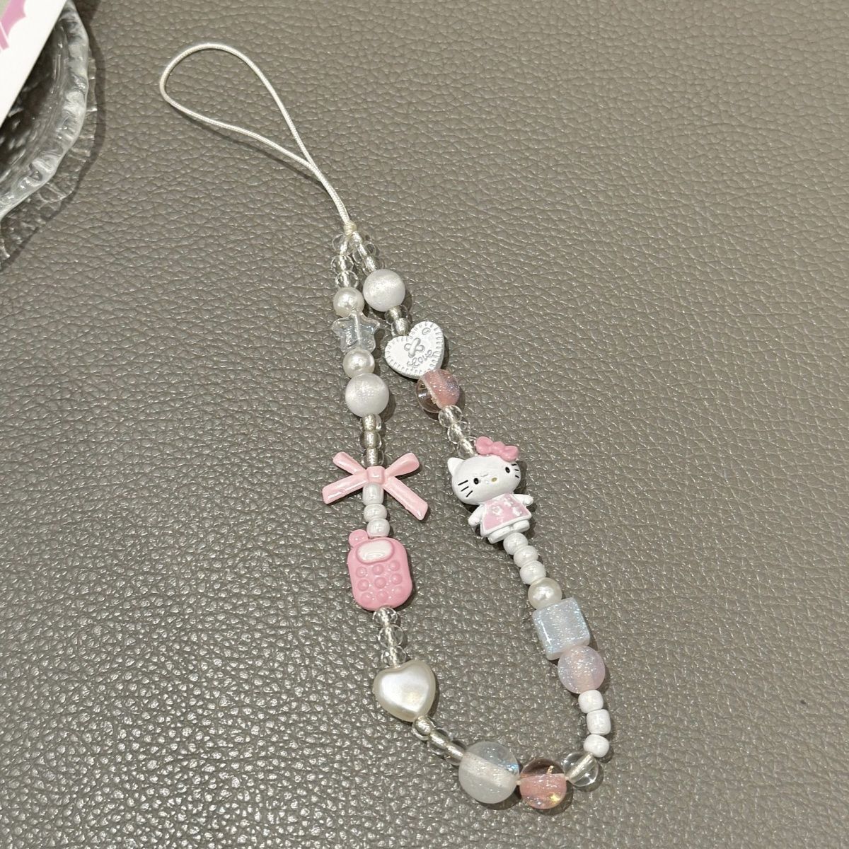 ピンクガーリッシュ携帯ストラップ ビーズ式 CCDカメラ ins風チェーン