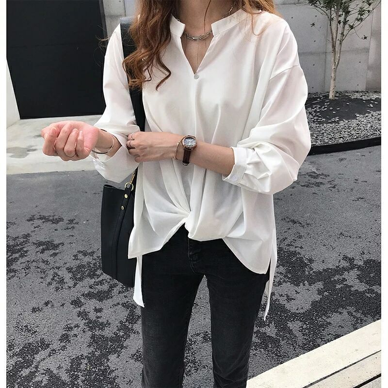 ブラウス 新作シンプルシフォンシャツ長袖トップスゆったりブラウスインナー