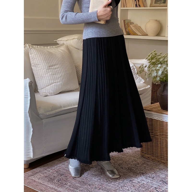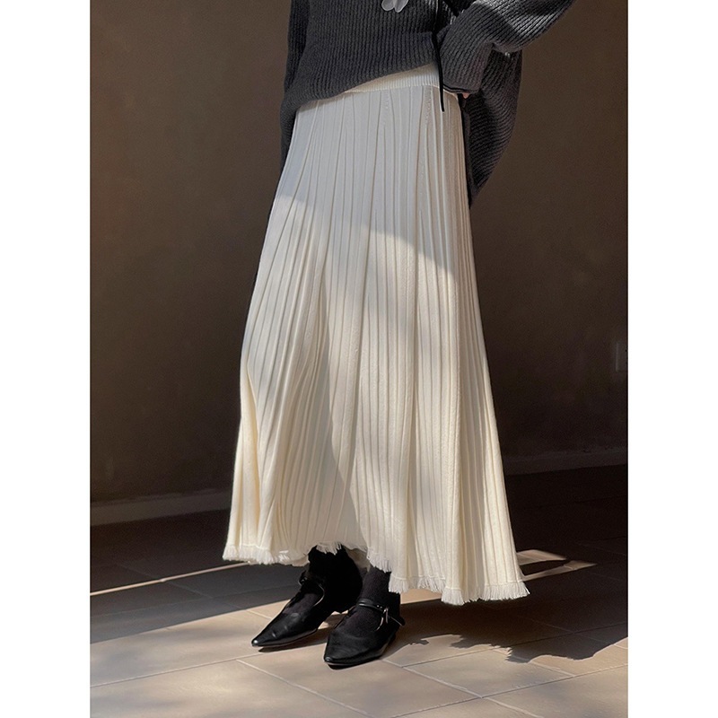 フリンジスカート 3色 上品 ニット スカート 2025 冬 新作 プリーツスカート