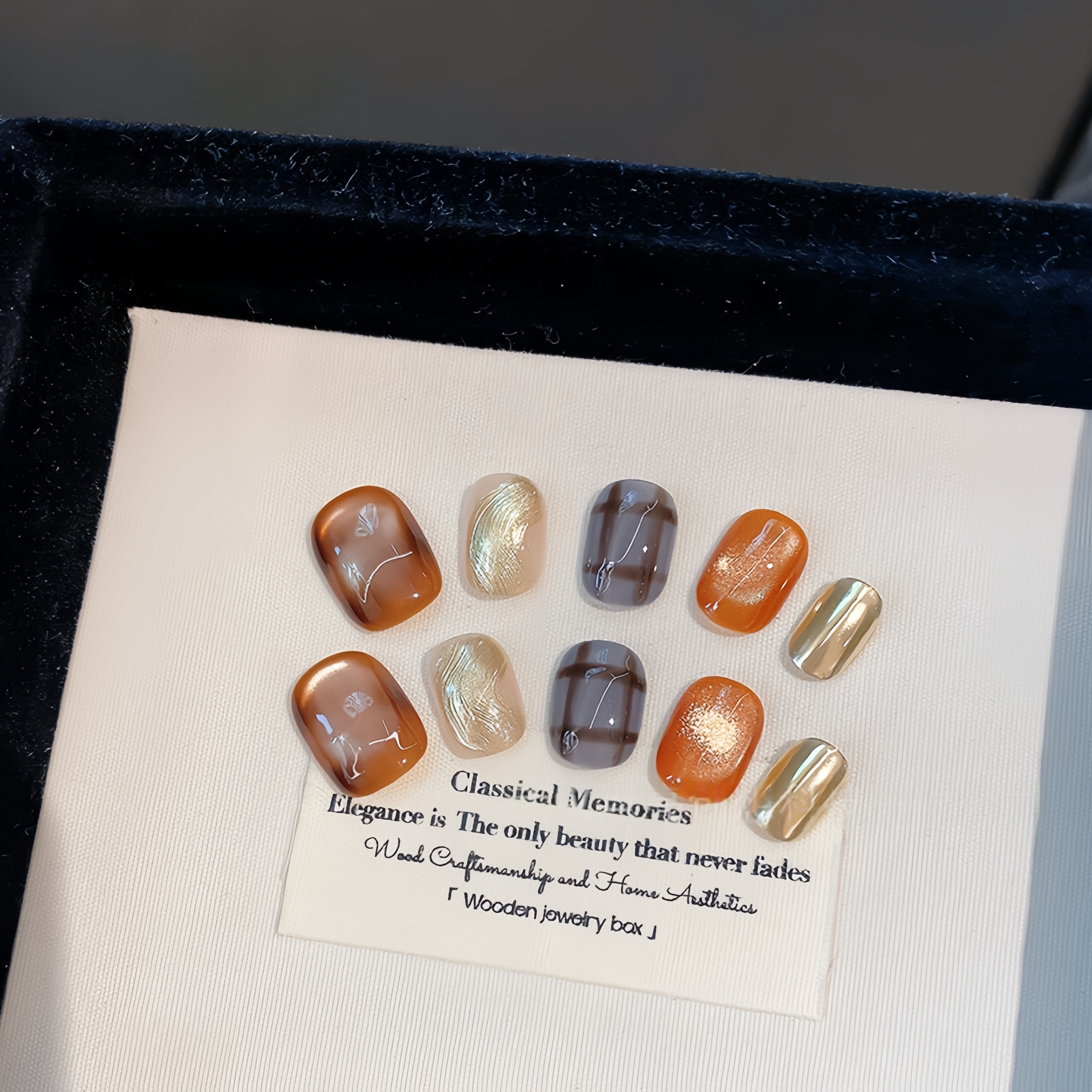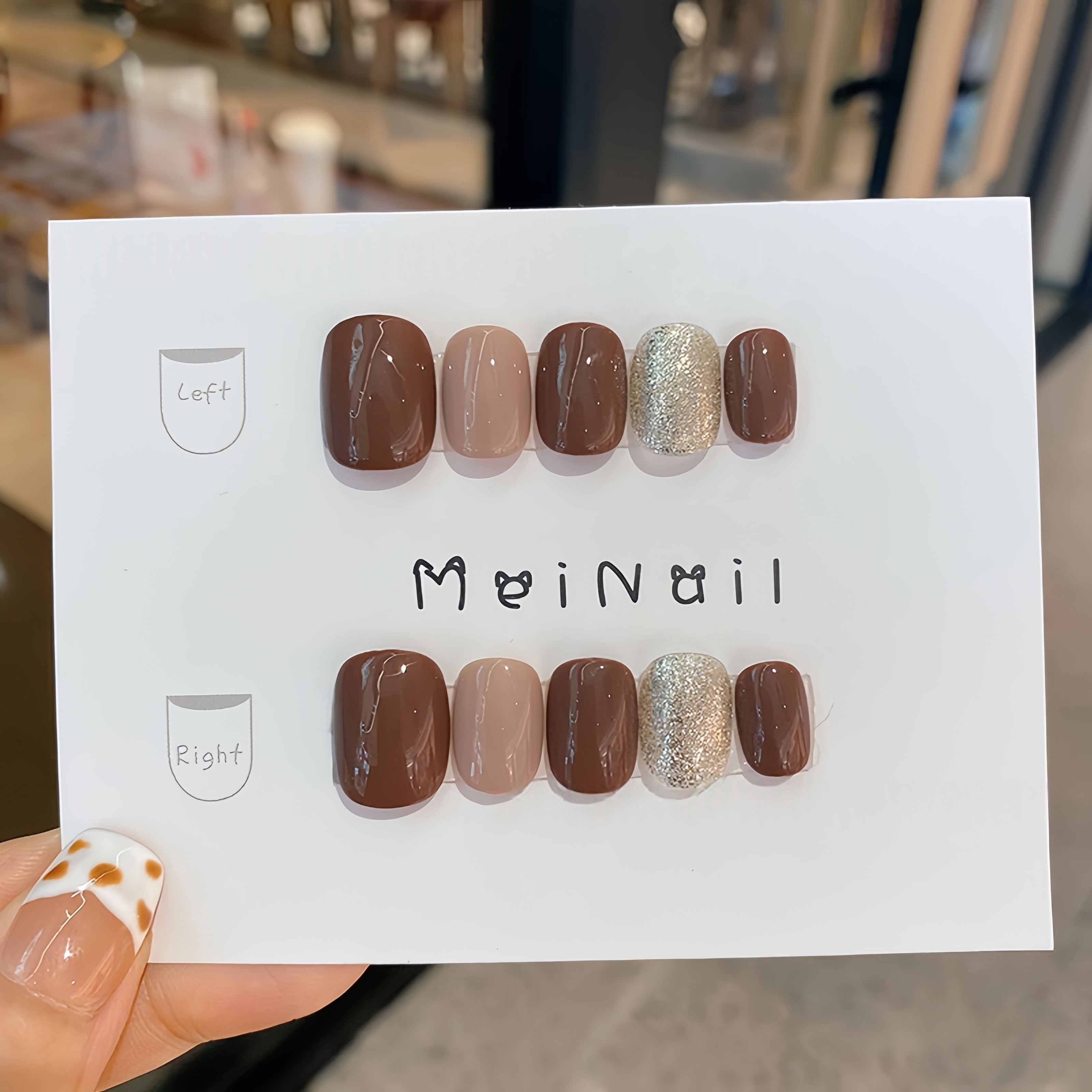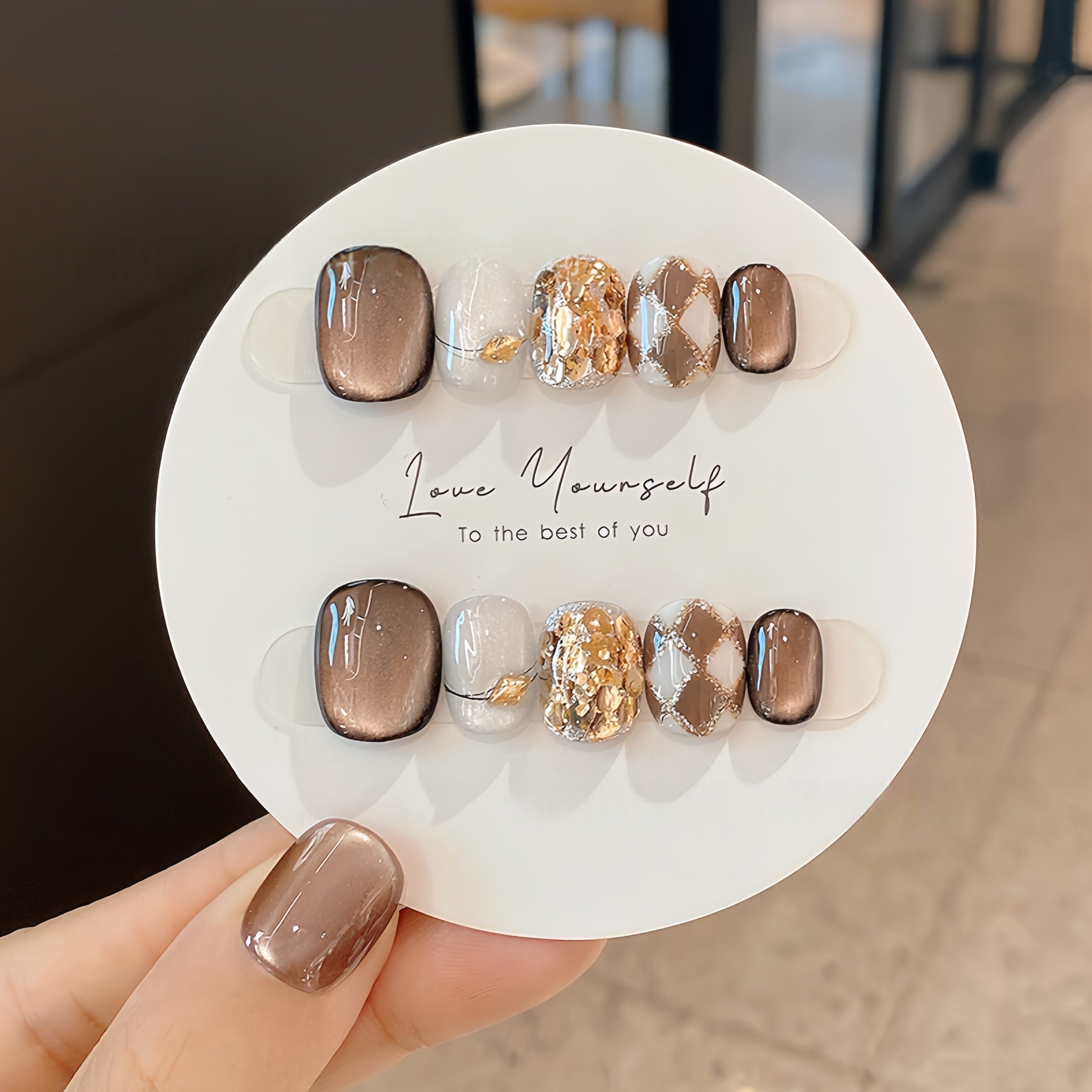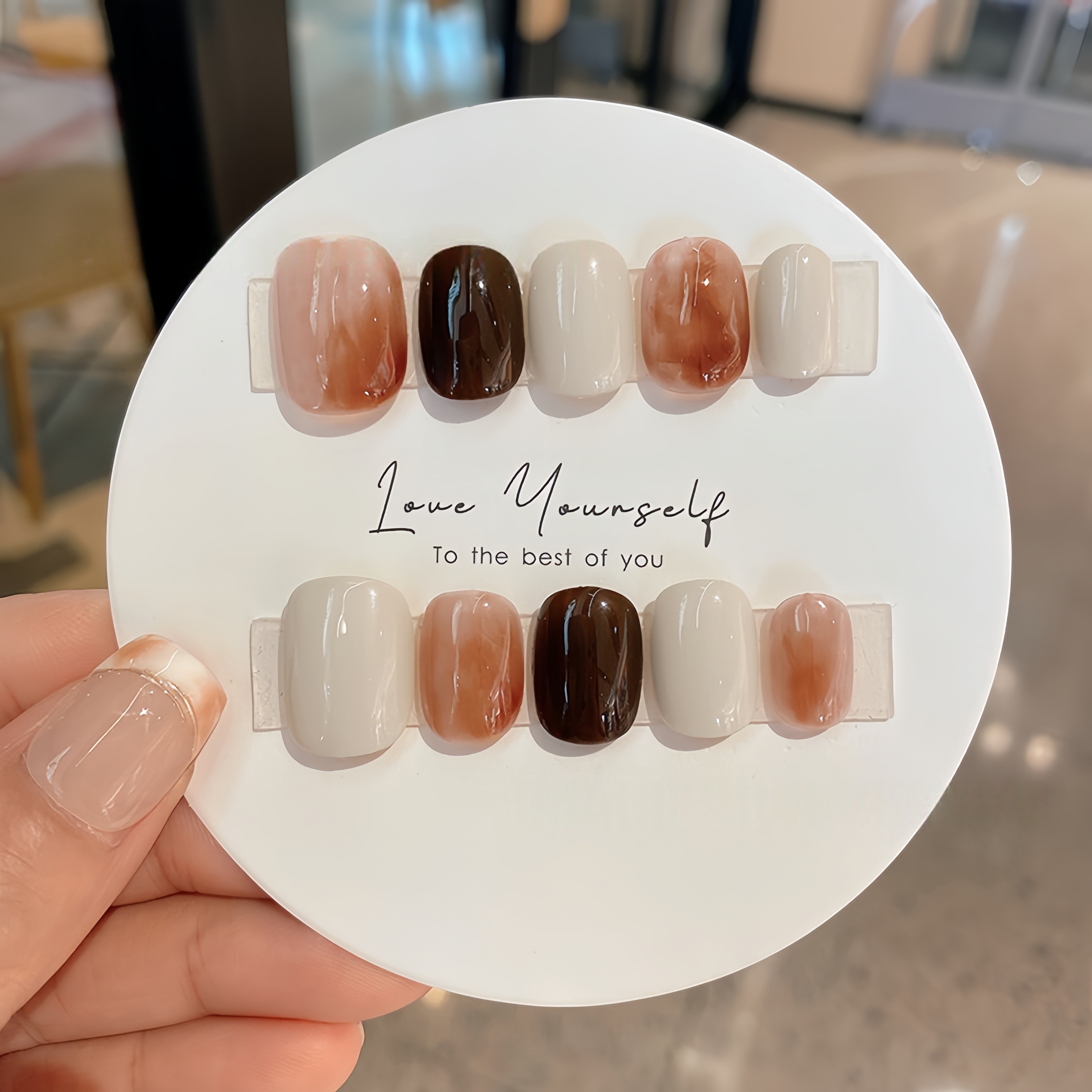 ネイルチップ 秋冬新作handmadeネイルカラー秋冬メイラードコーヒー色で白を出した個性的で高級感のあるネイル10pcs