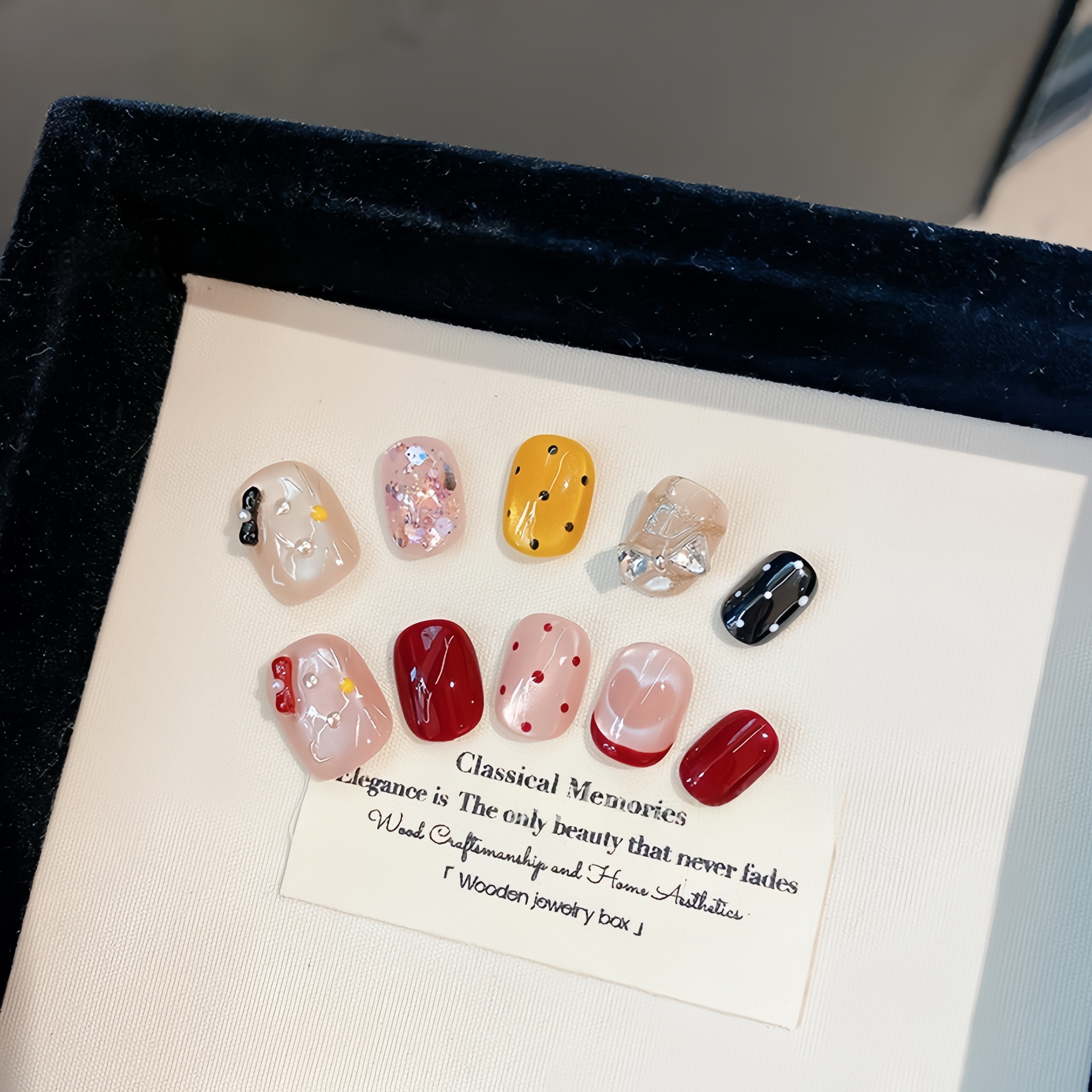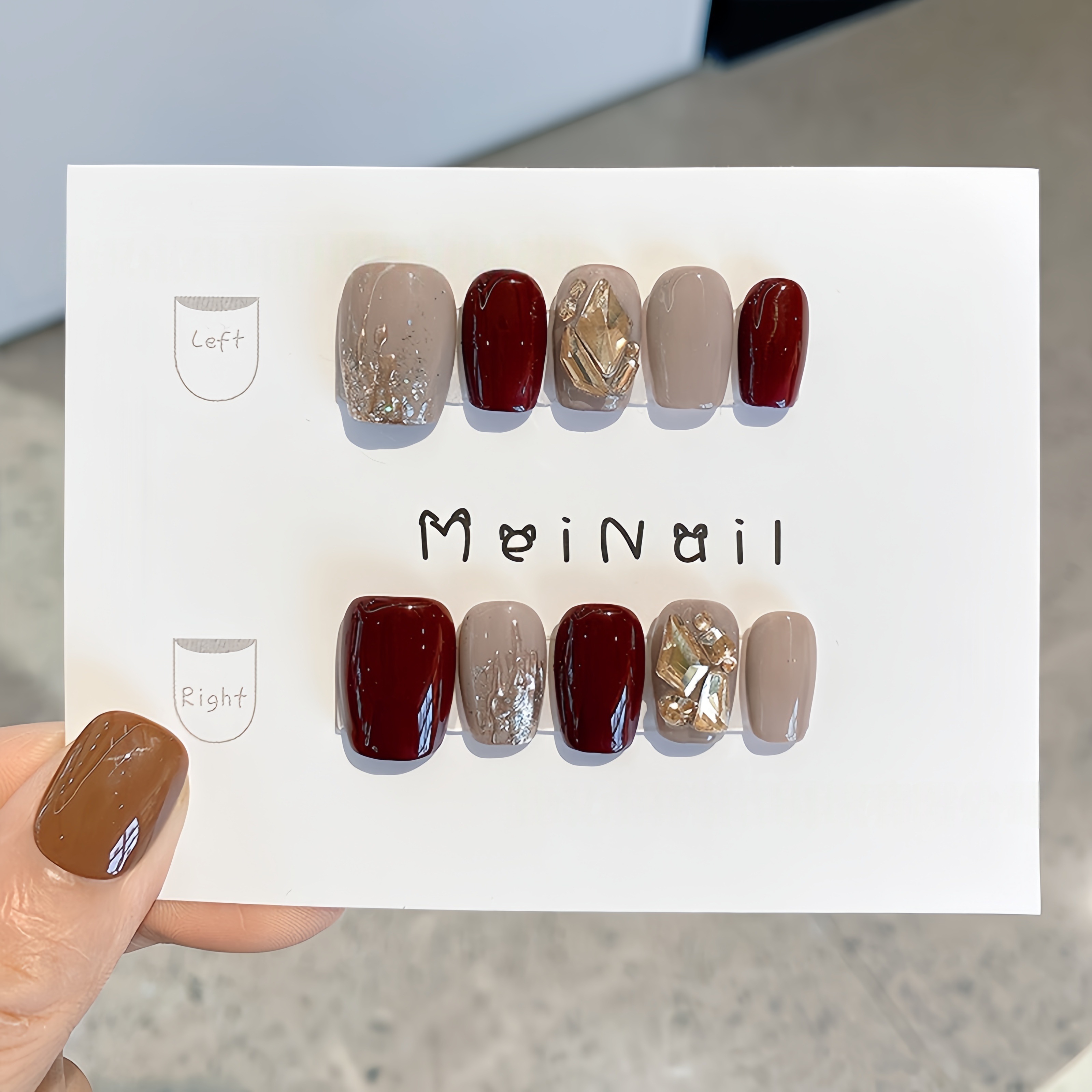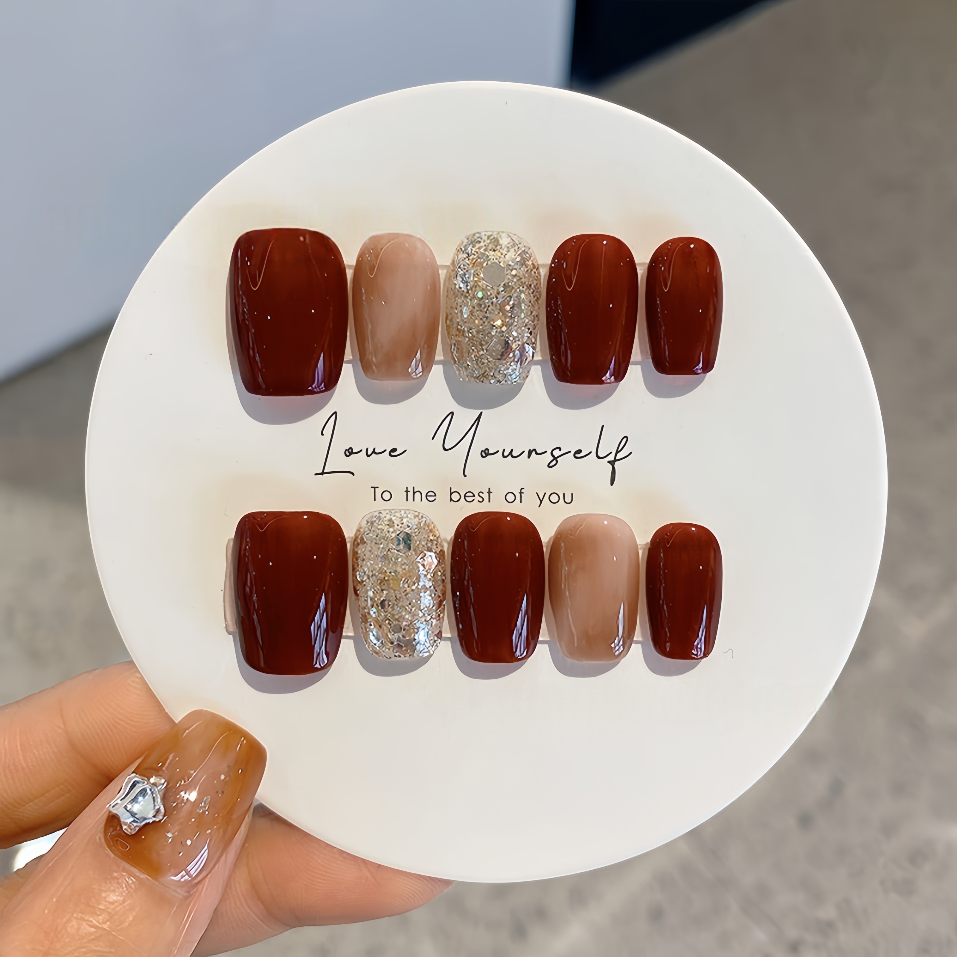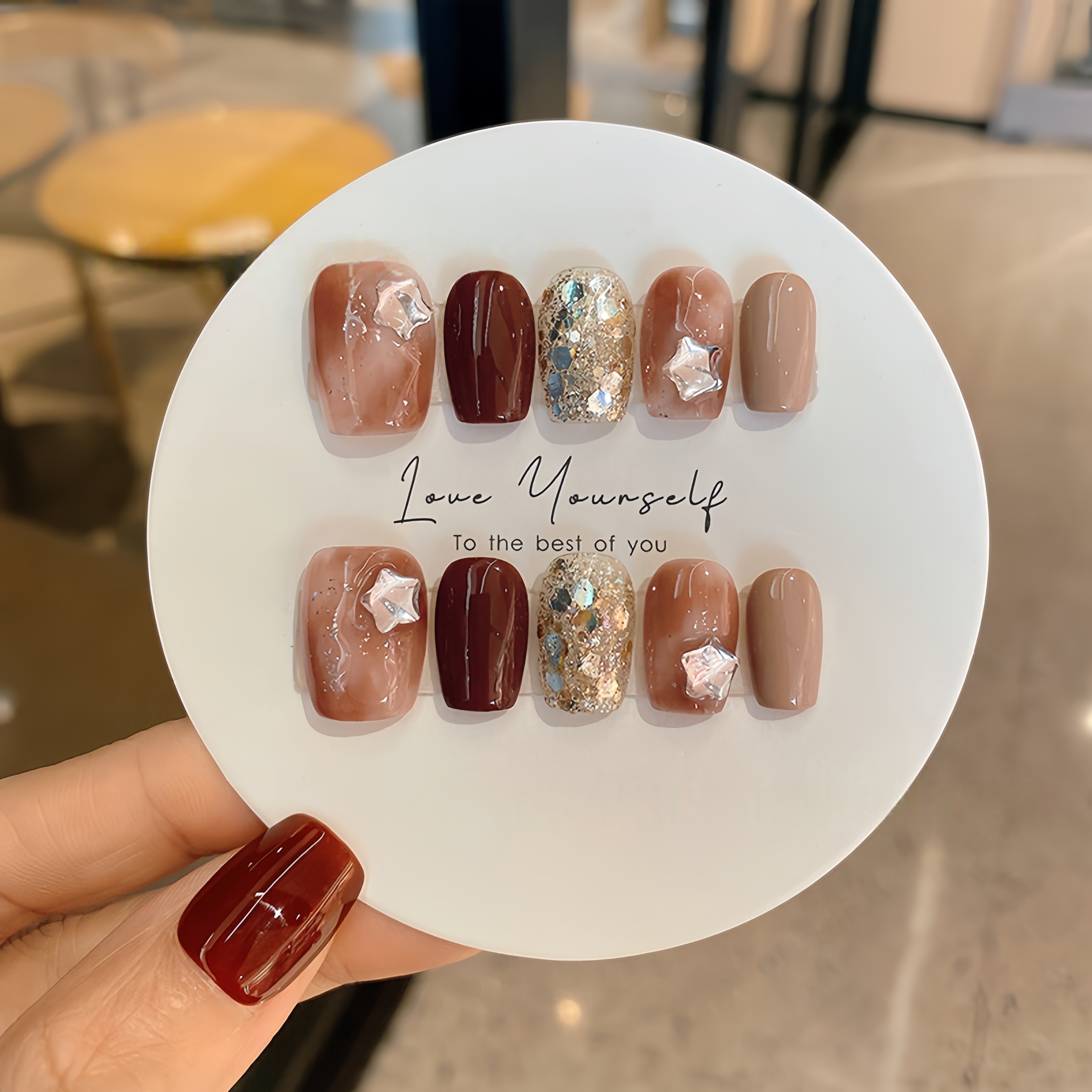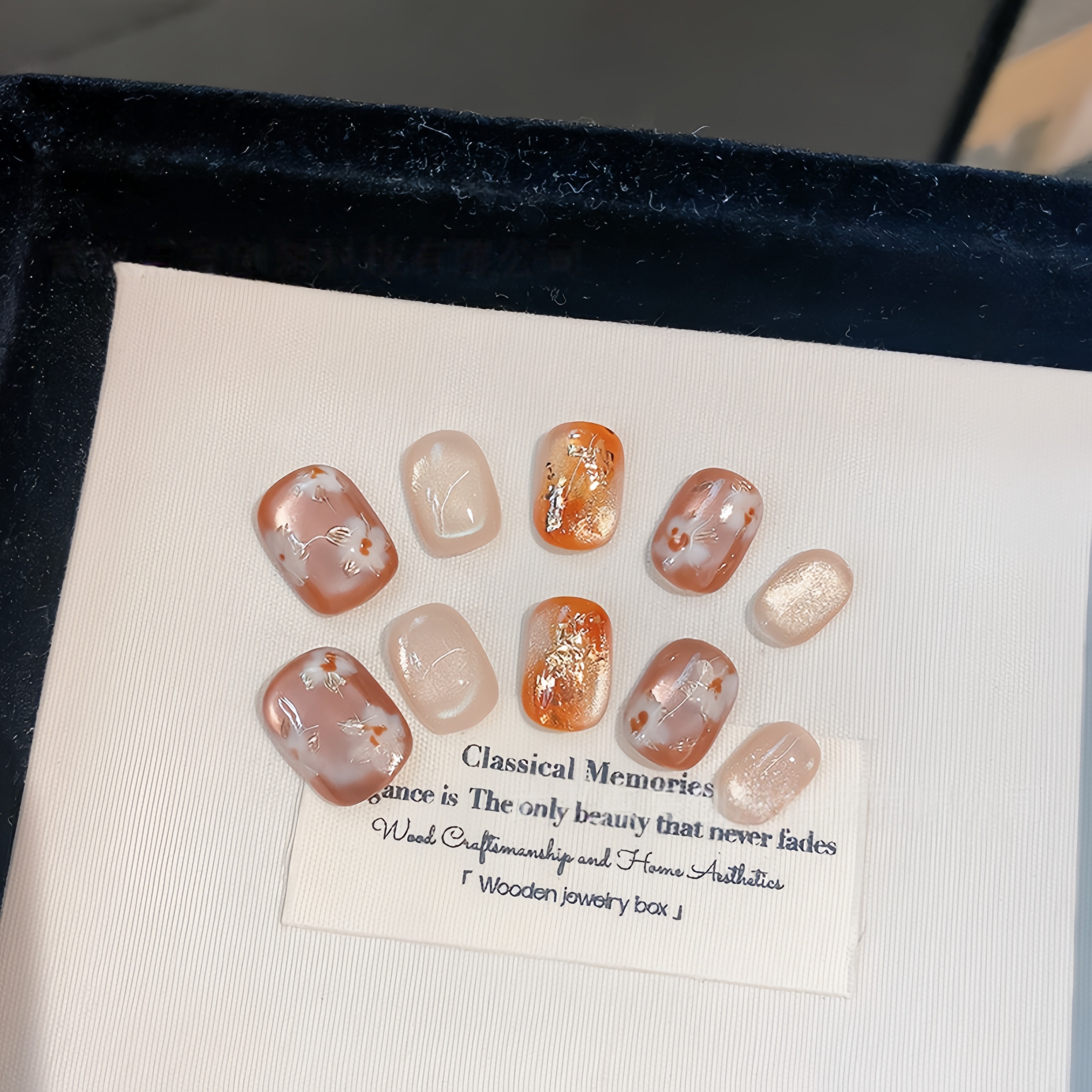 ネイルチップ 秋冬新作handmadeネイルカラー秋冬メイラードコーヒー色で白を出した個性的で高級感のあるネイル10pcs