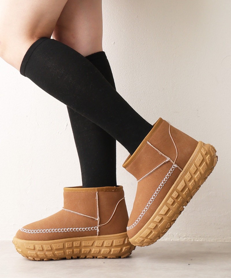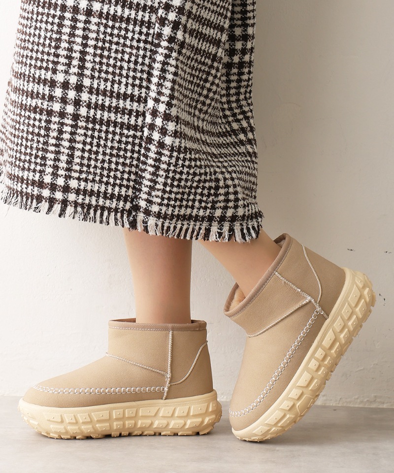 厚底 凹凸ソール ボリュームファー ショート ムートンブーツ