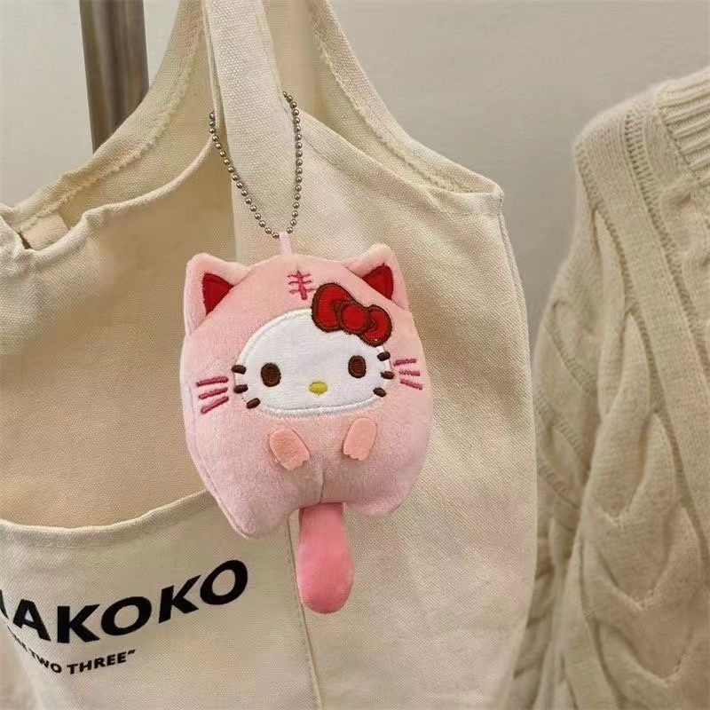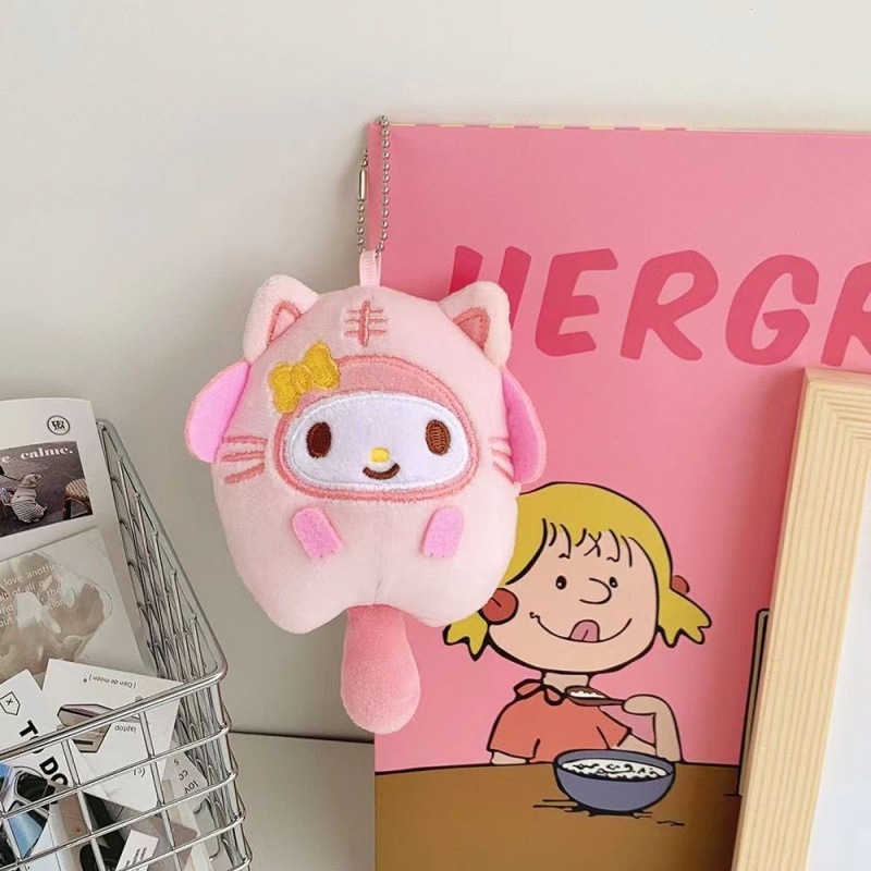 ハローキティとメロディとクロミの変装(コスチューム)ぬいぐるみキーホルダー ブサカワクマノミのバッグチャームストラップ