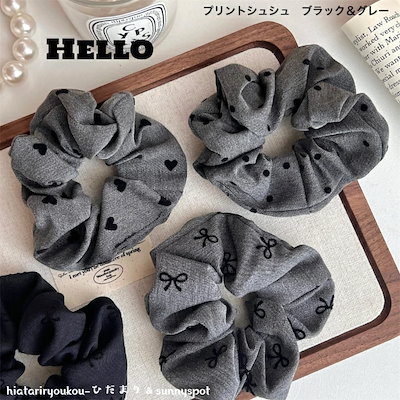 プリントシュシュ ブラック&グレー 新発売セール 大人 かわいい ヘアアレンジ まとめ髪 ヘアアクセ プレゼント シック