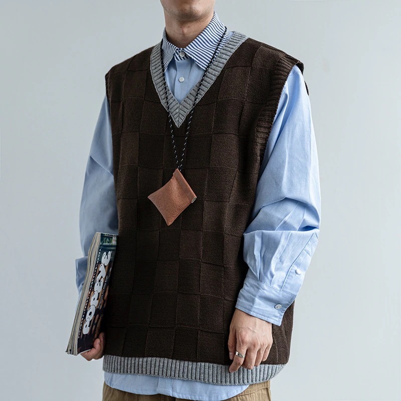 日系アカデミア風ニットベストベスト春秋ゆったりクルーネックセーターベストノースリーブコーデュロイニットキャンパー