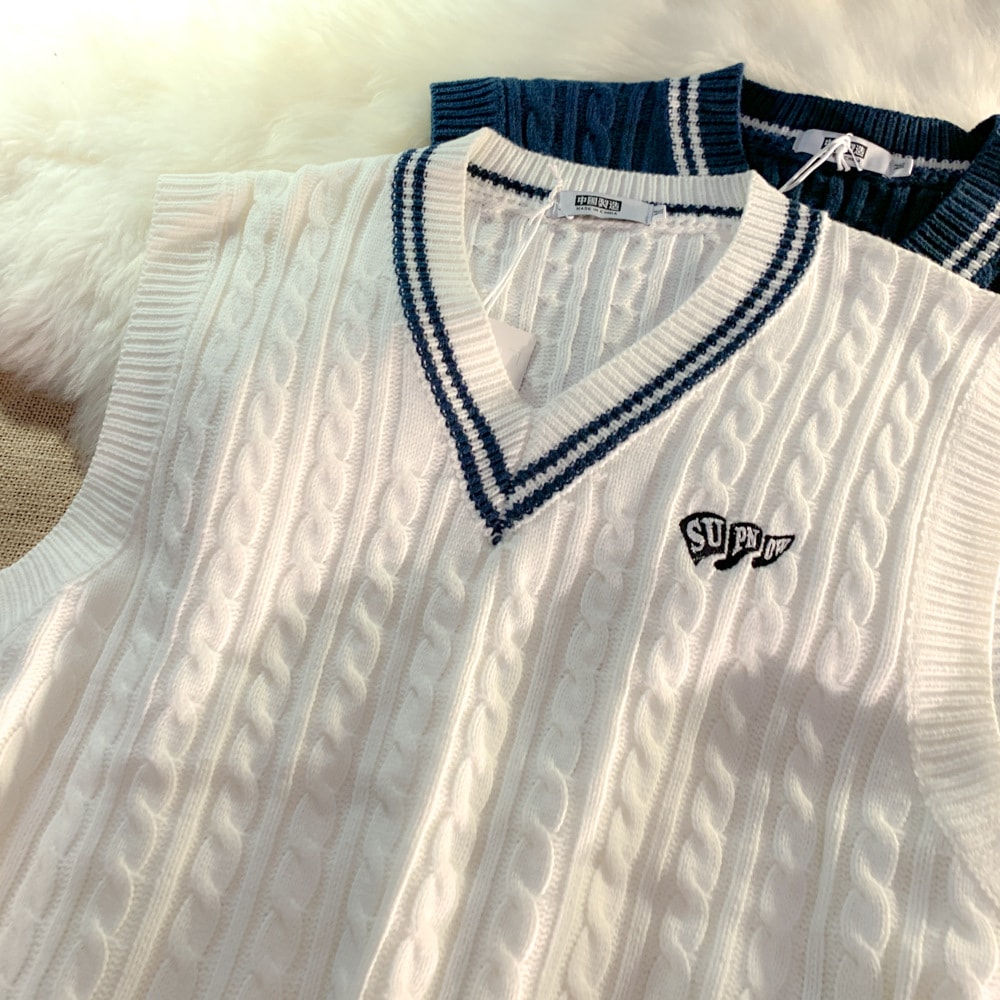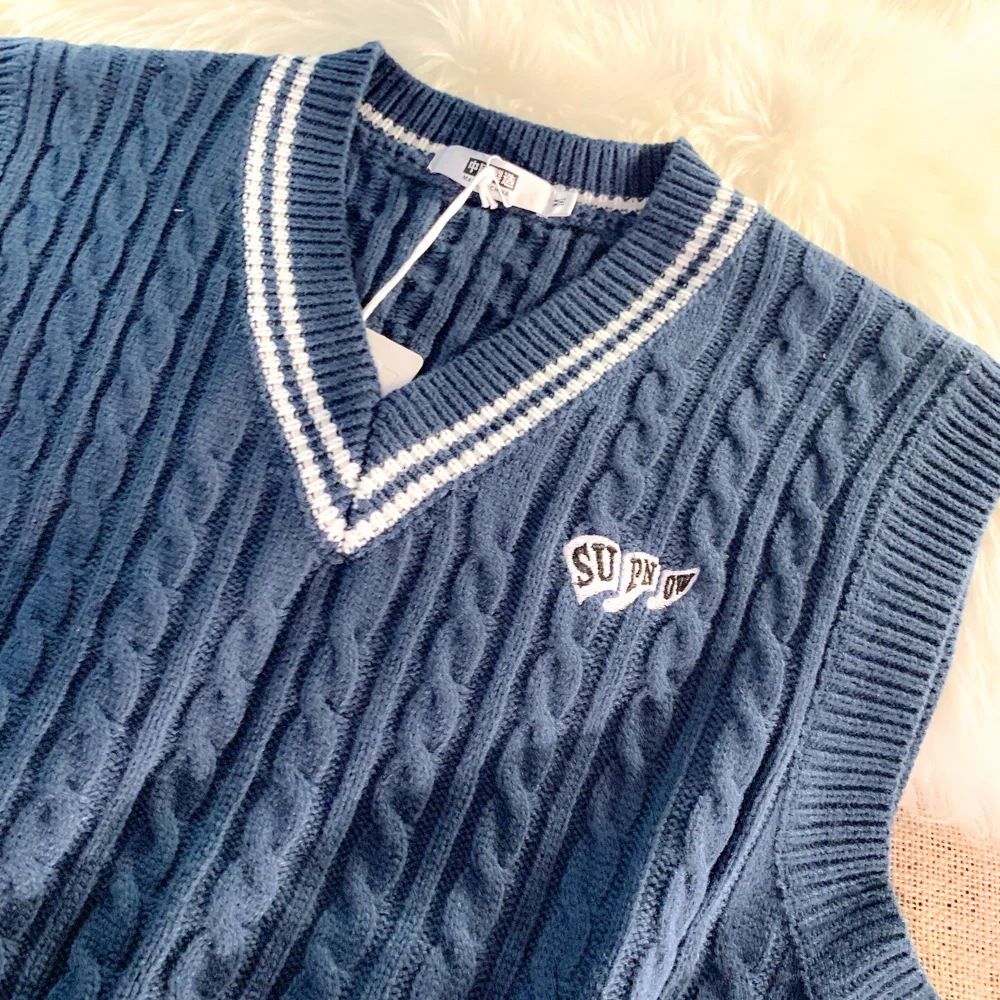 デザイン感のあるセーターベスト韓国版ゆったりオールマイティーVネックノースリーブアウター学院風ベスト男女