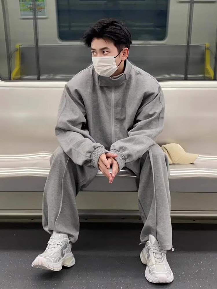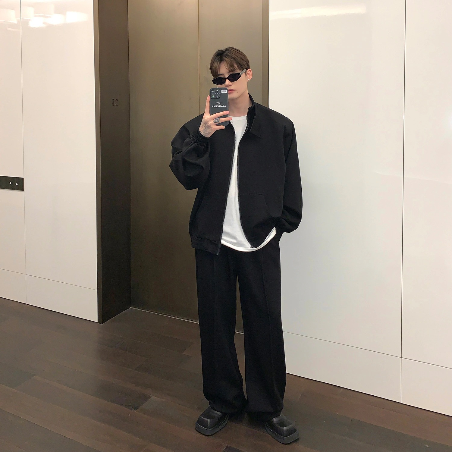 メンズファッション 韓国風 カジュアル ゆったり スタンドカラー スウェット セットアップ メンズ 秋 無地 スポーツ ツーピース