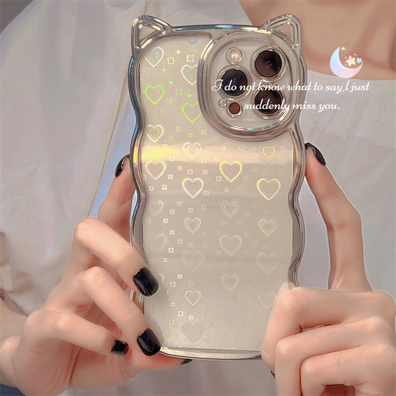 レーザーハート電鍍猫耳 iPhone16 Pro Max/Apple 15対応 14/13用 耐衝撃ソフトケース