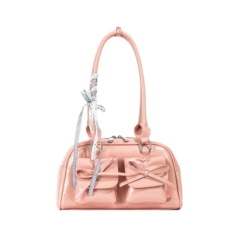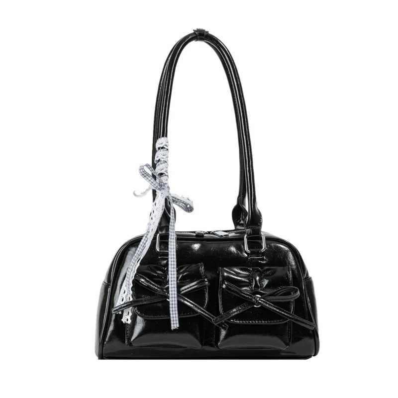 3日出荷 人気商品 横長 ボストンバッグ 韓国ファッション 脇の下 斜めがけ 通勤 トートバッグ 蝶ネクタイ