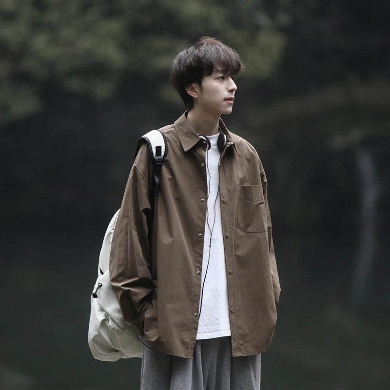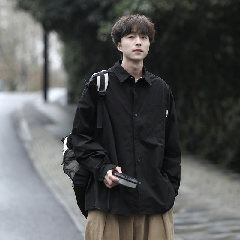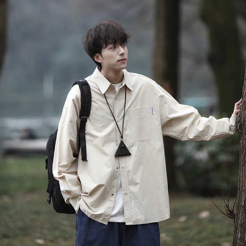 日系レトロ長袖シャツ男性用 春秋向けデザイン性のあるゆったりカジュアルシャツ アメリカンハイストリートファッションブランド ワイルドでクールなジャケット 長袖シャツ