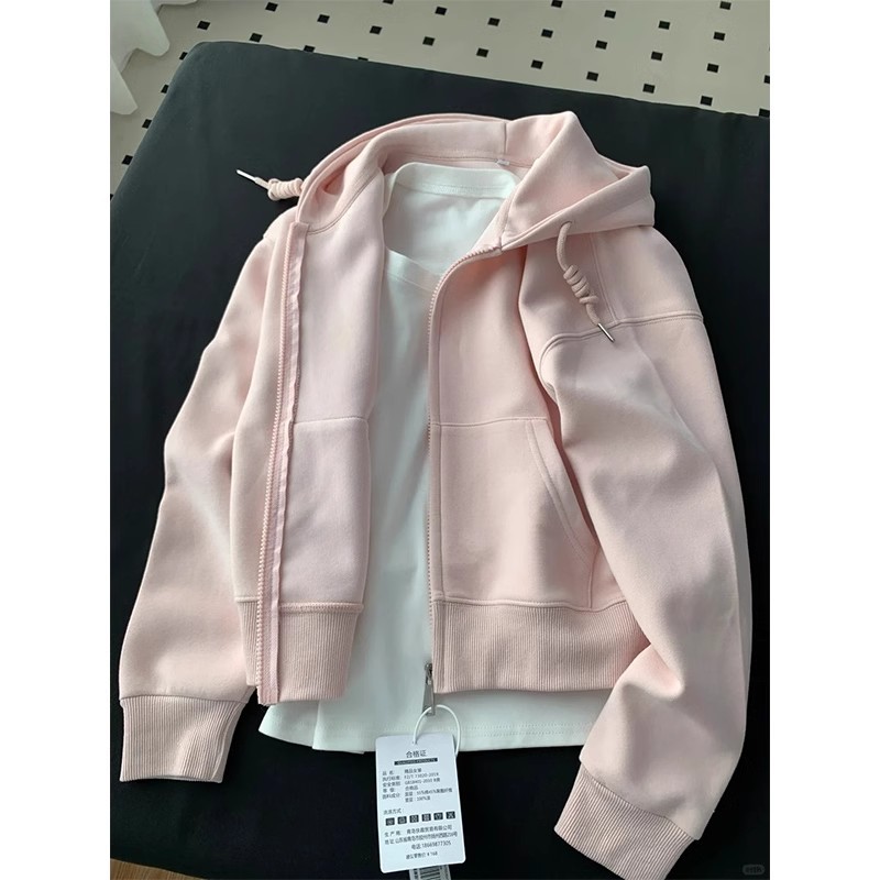 ショート丈スウェットジャケット女性用フード付きトップス春秋用2025年新作人気アイテム初秋用小柄体型にフィットするスリムカーディガン