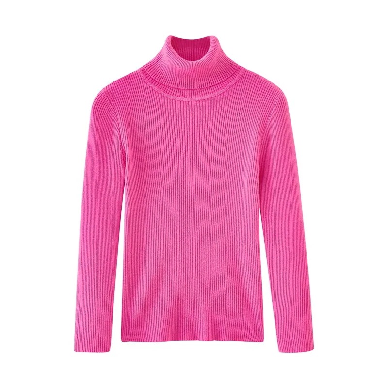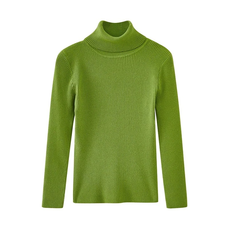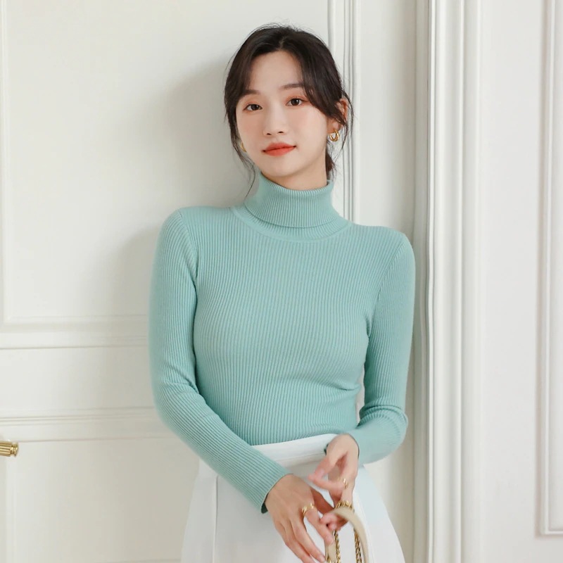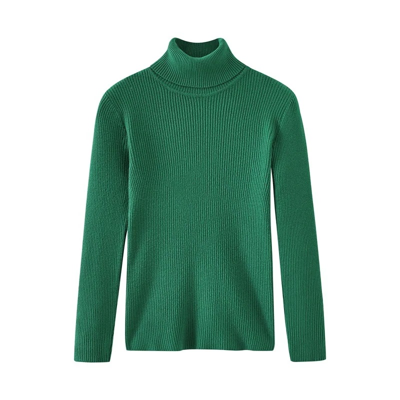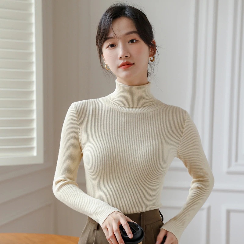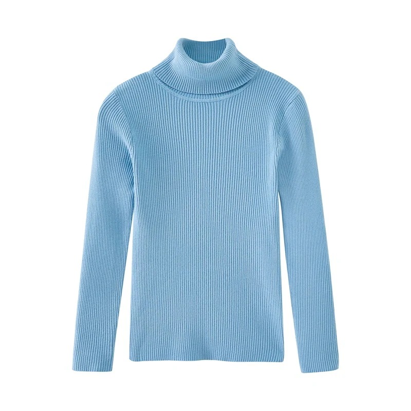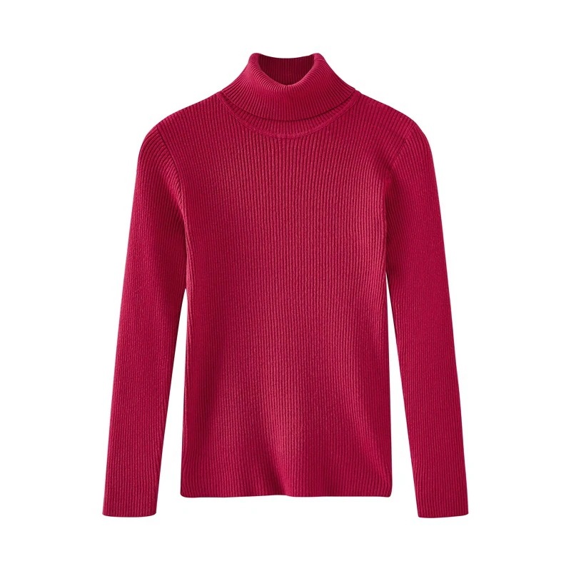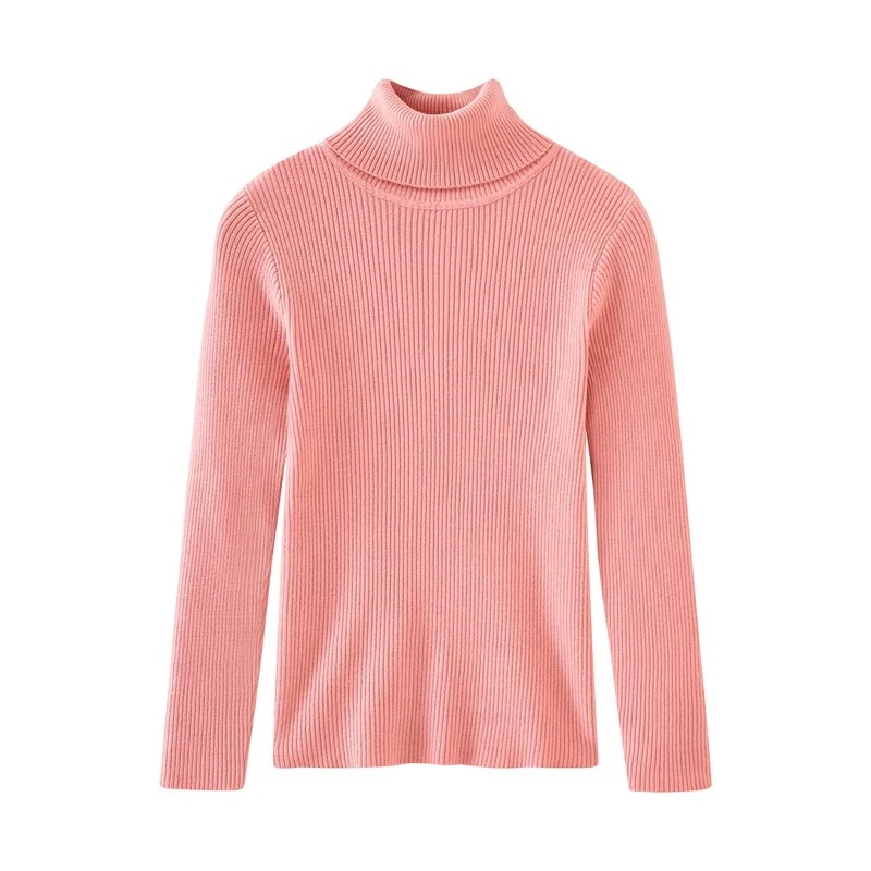 ハイネックインナー女性用秋・冬用スリムシルエットおしゃれ万能ロングスリーブニットプルオーバー無地セータートップス