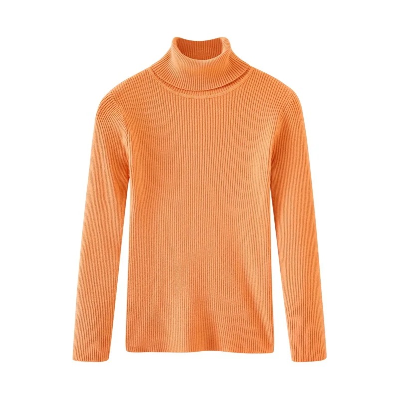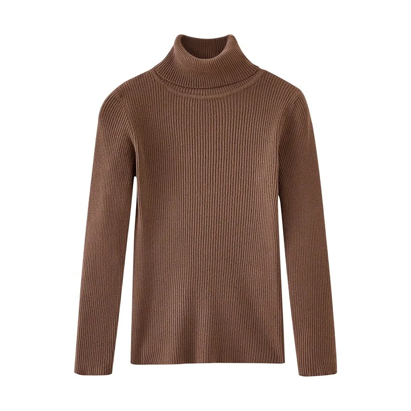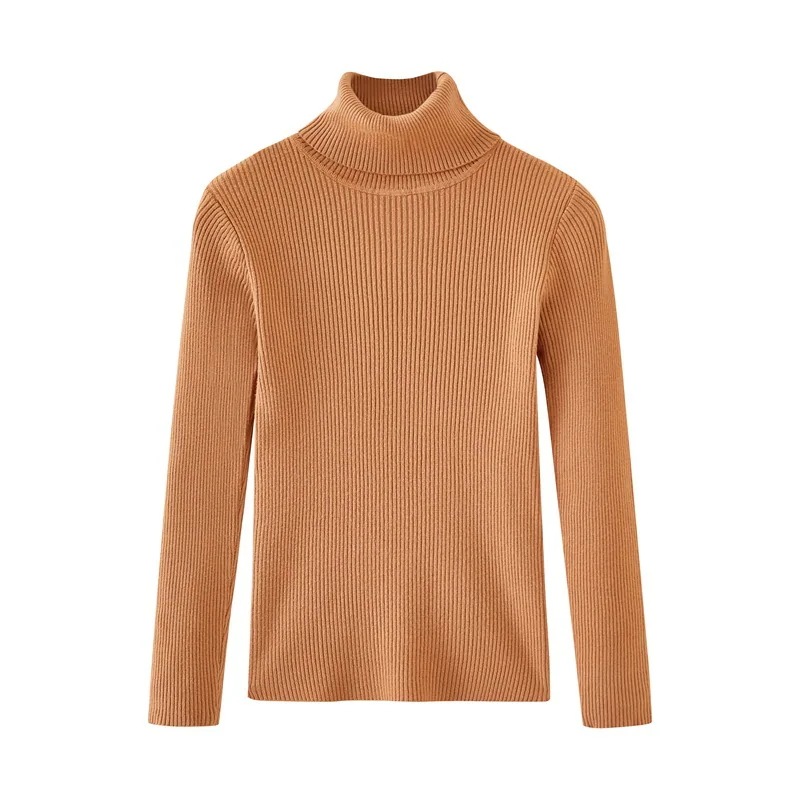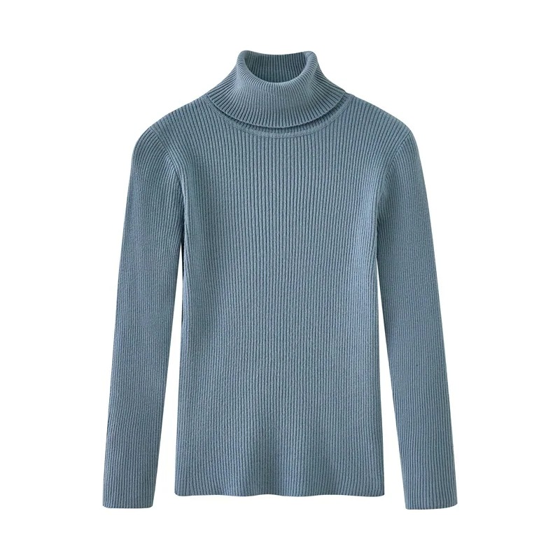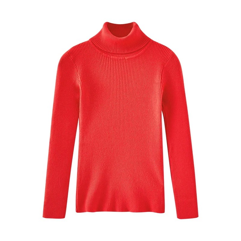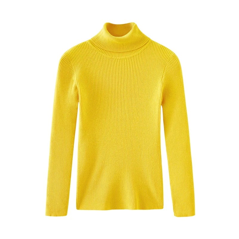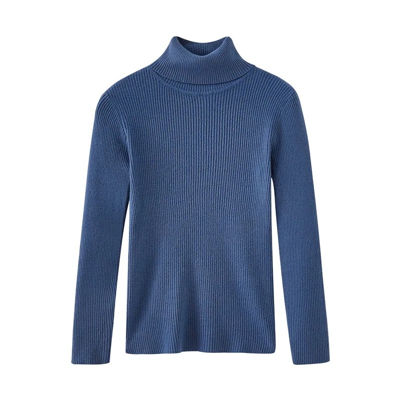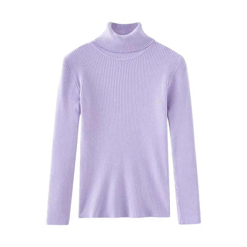 ハイネックインナー女性用秋・冬用スリムシルエットおしゃれ万能ロングスリーブニットプルオーバー無地セータートップス
