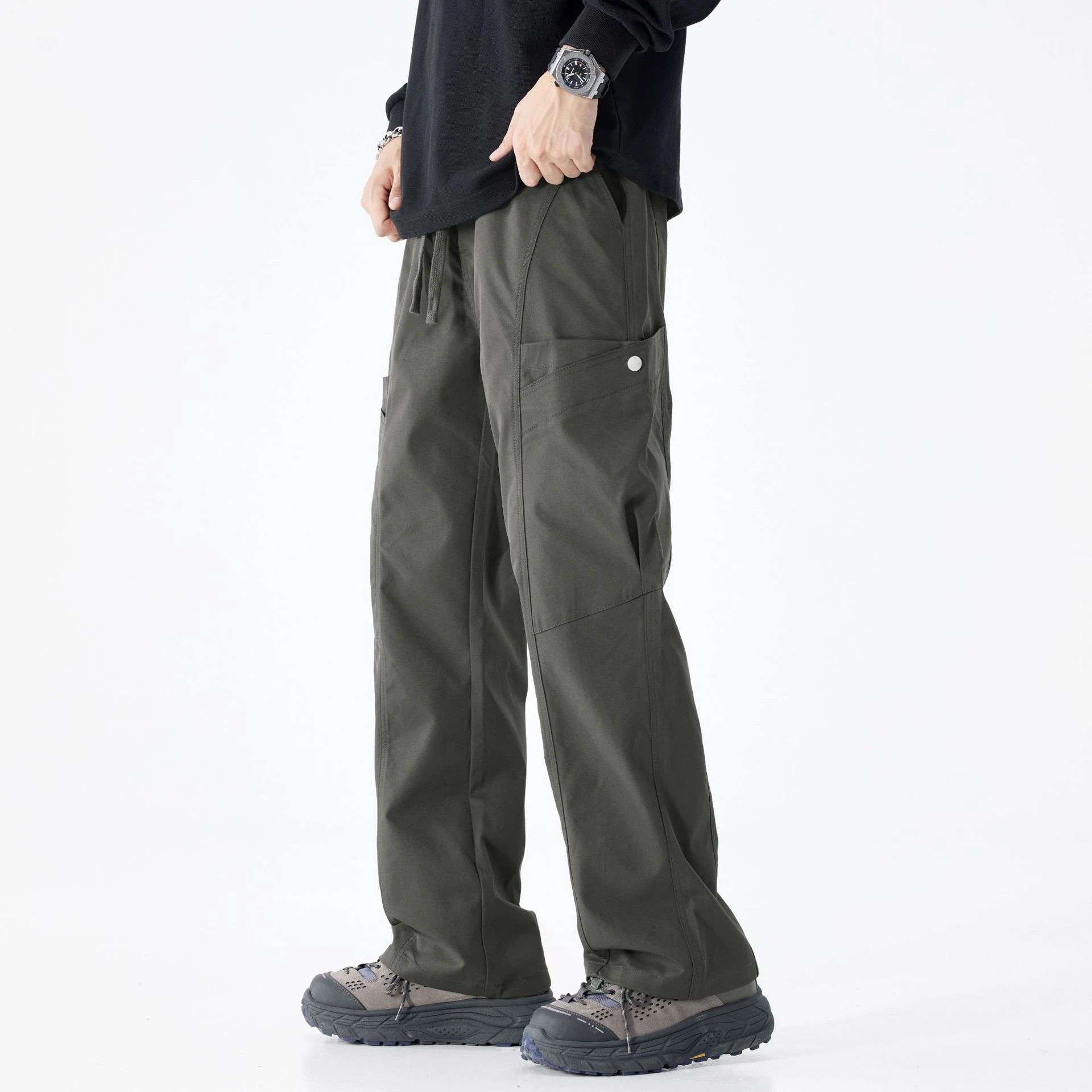 アメリカンスタイルのストリートブランド ゆったり丈のカーゴパンツ メンズトレンド 合わせやすいワイドレッグ カジュアルストレートワークパンツ